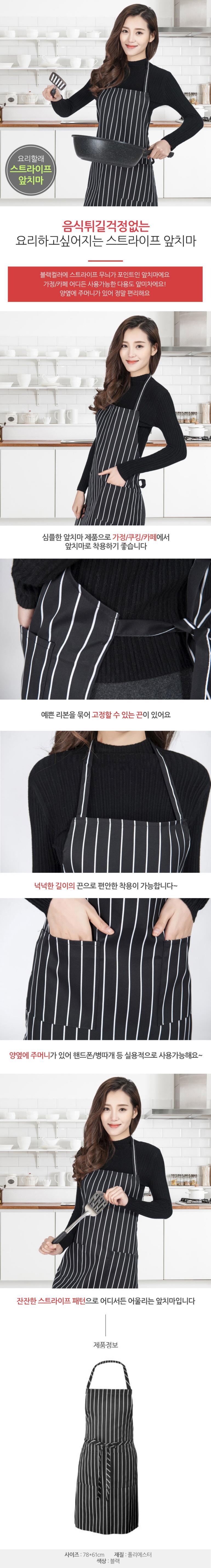 (2개묶음)요리할래 스트라이프 앞치마(블랙)