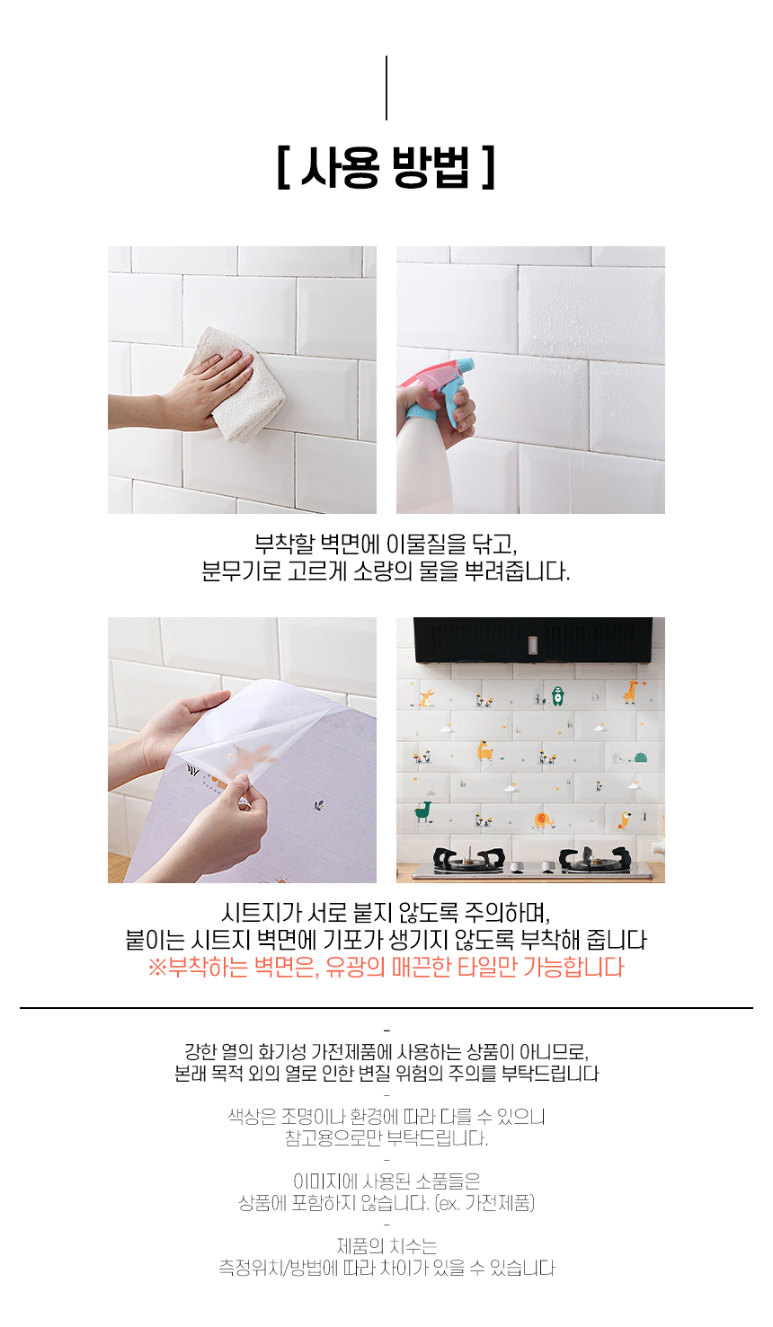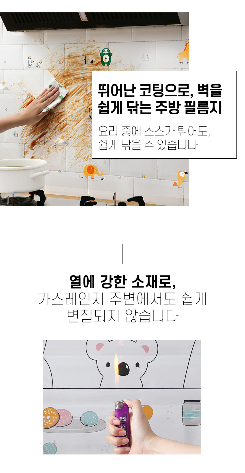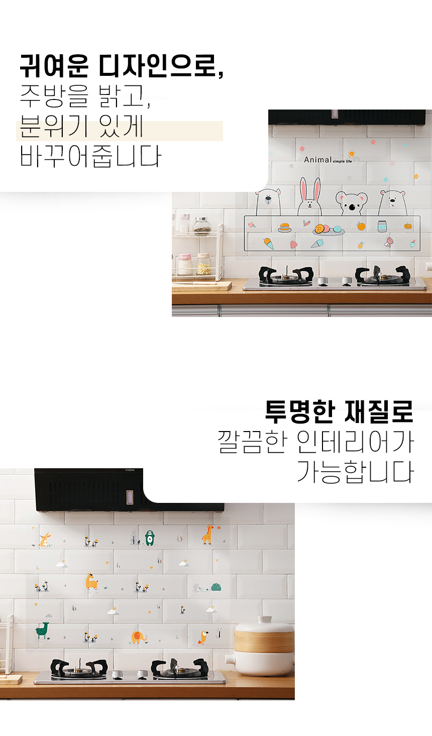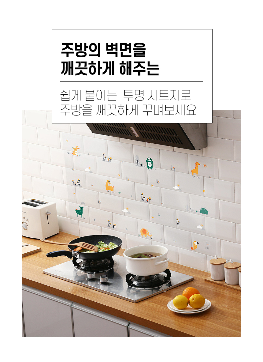 요리하고 싶은 접작시트지 주방벽 오염방지 애니멀 투명 시트지