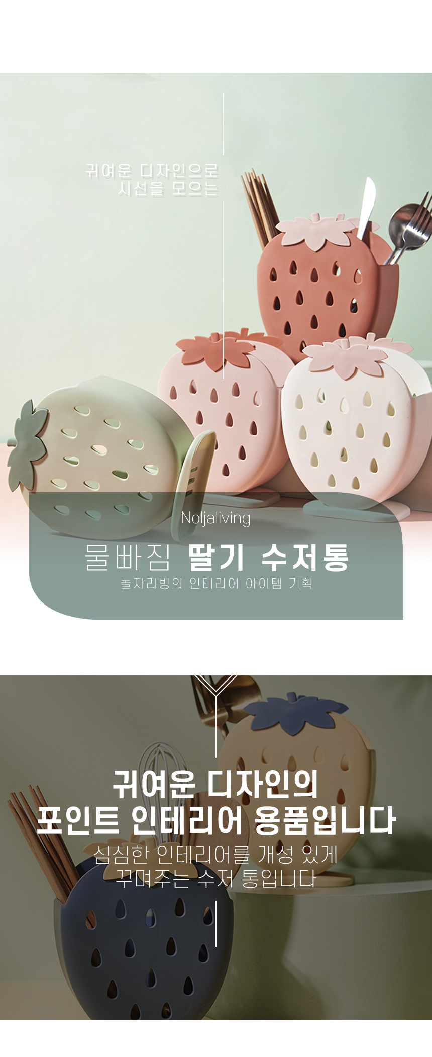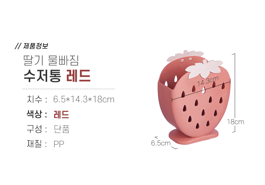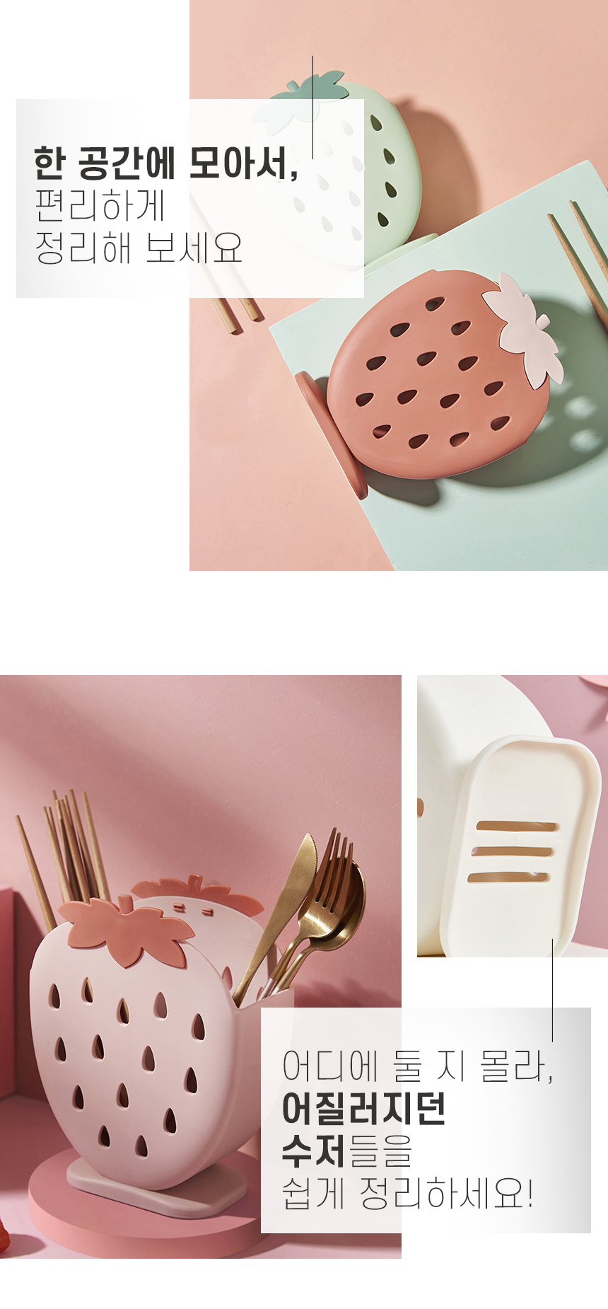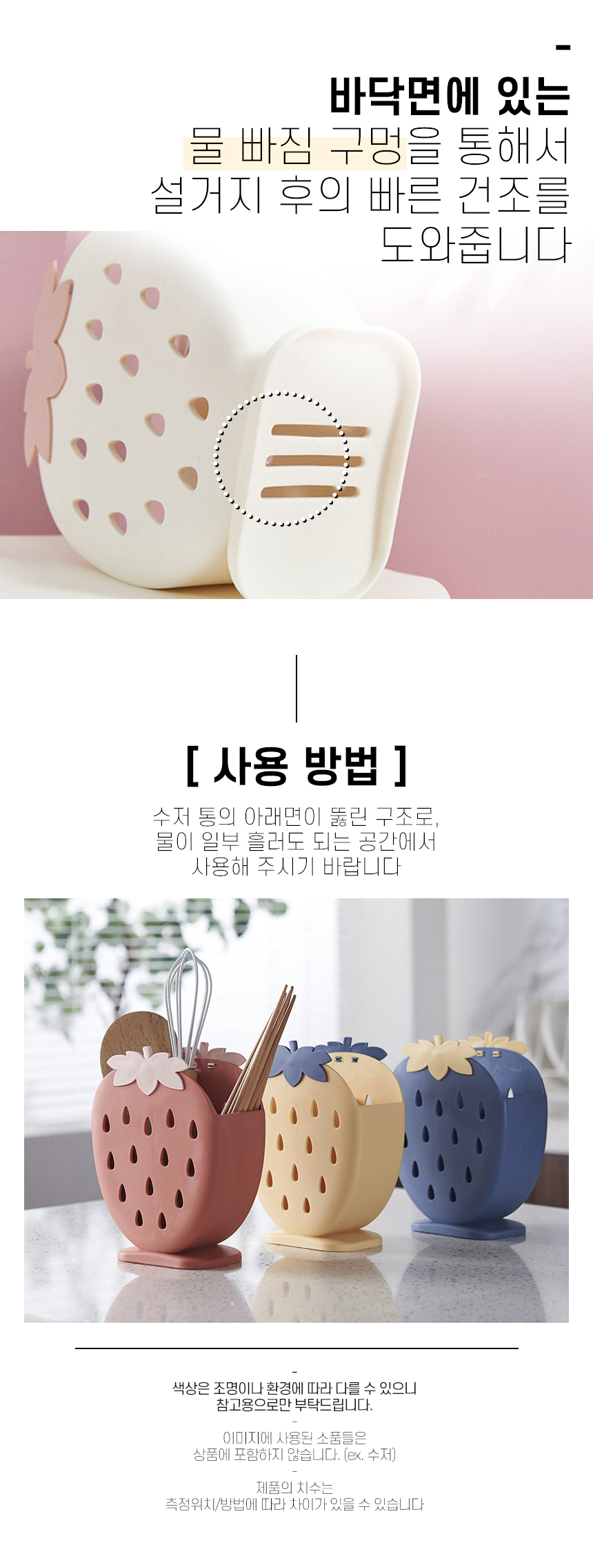 모던 딸기 물빠짐 수저통 수저꽂이 주방소품정리 주방용품정리