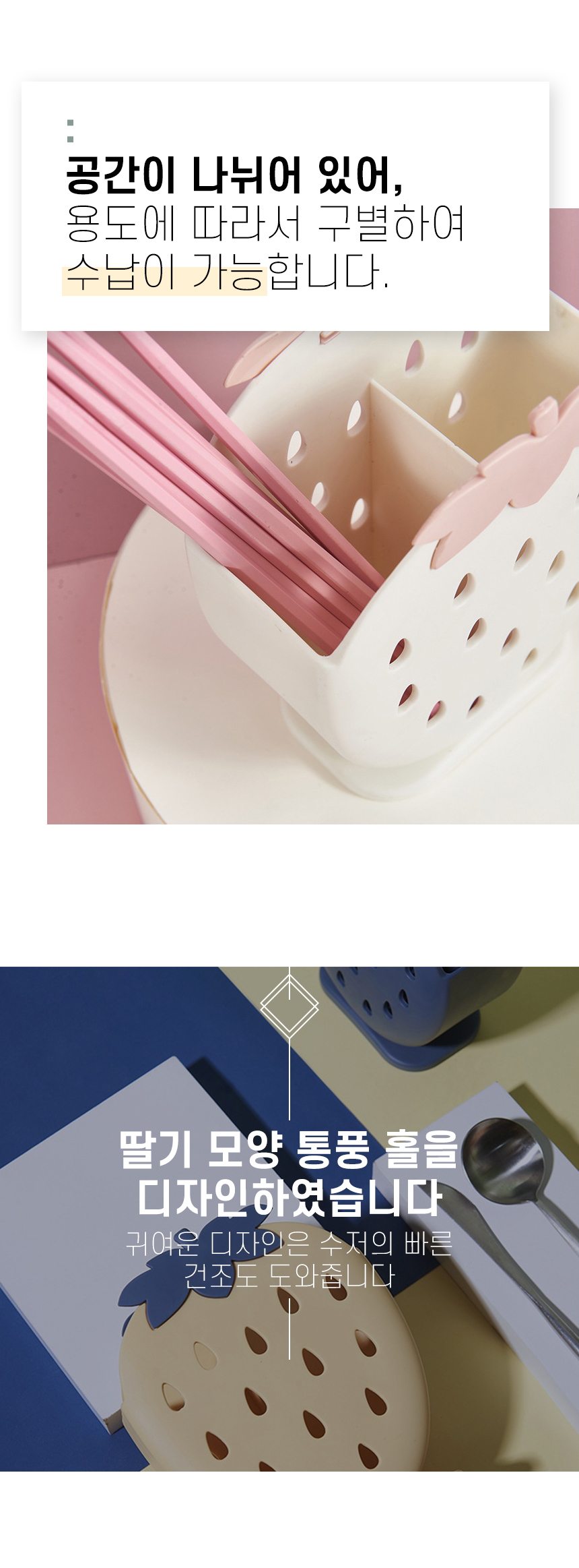 모던 딸기 물빠짐 수저통 수저꽂이 주방소품정리 주방용품정리 이미지/