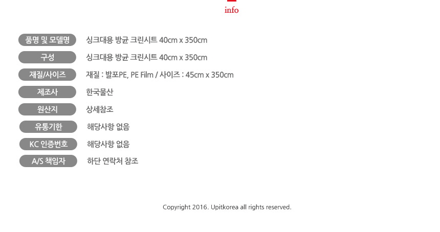 싱크대용 방균 크린시트 40cm x 350cm 5SET 이미지/