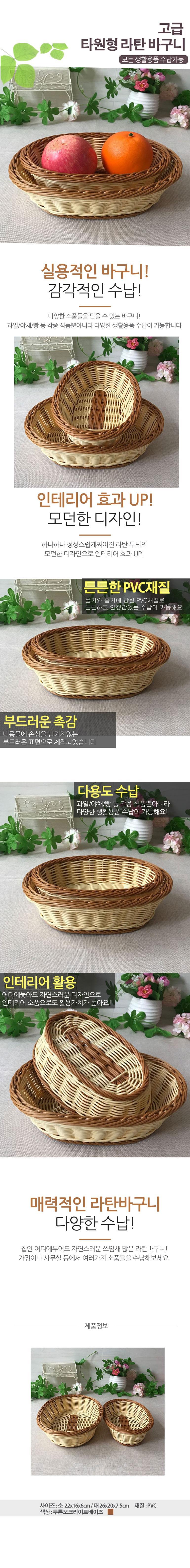(2개묶음)고급 타원형 라탄바구니 대