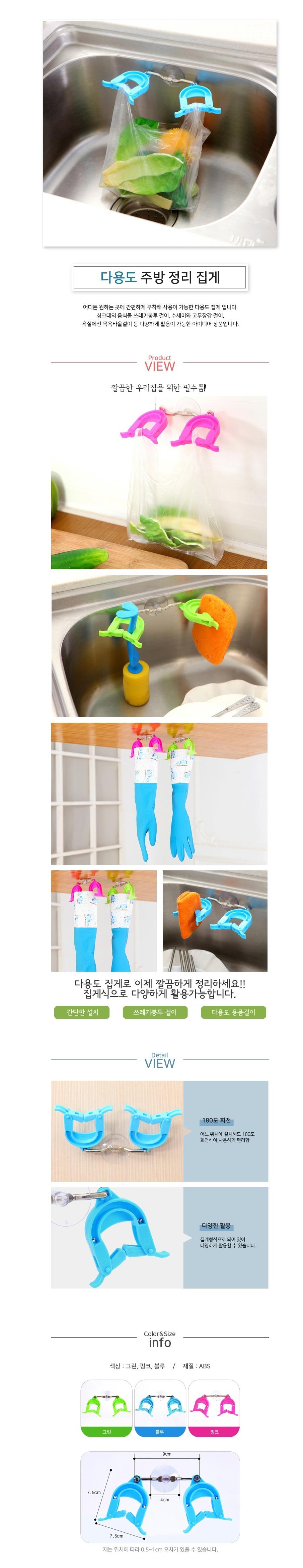 180도 회전 다용도 주방 정리집게 타월걸이 주방기구