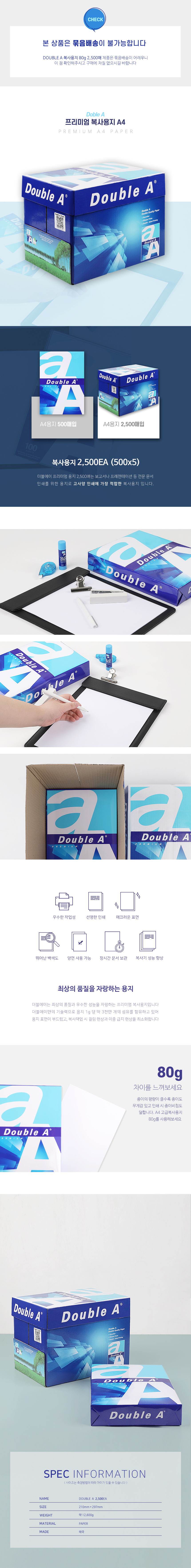업무 학원 레포트 더블에이A4 잉크젯 복사용지 2500매 이미지/