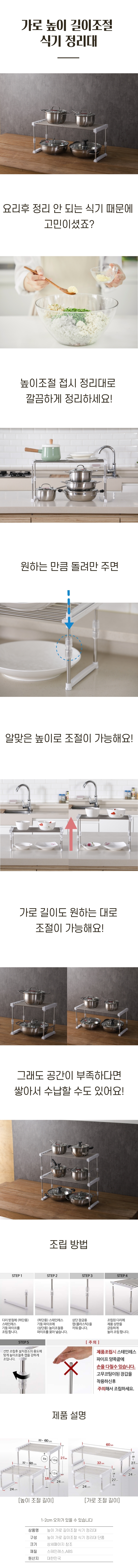 높이 폭조절 주방 선반 정리대 거치대