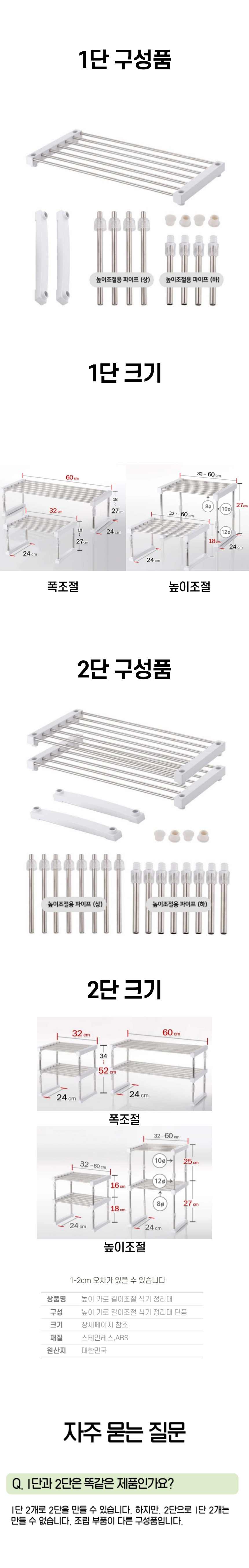 1. 품명 및 모델명 : 높이 폭조절 주방 선반