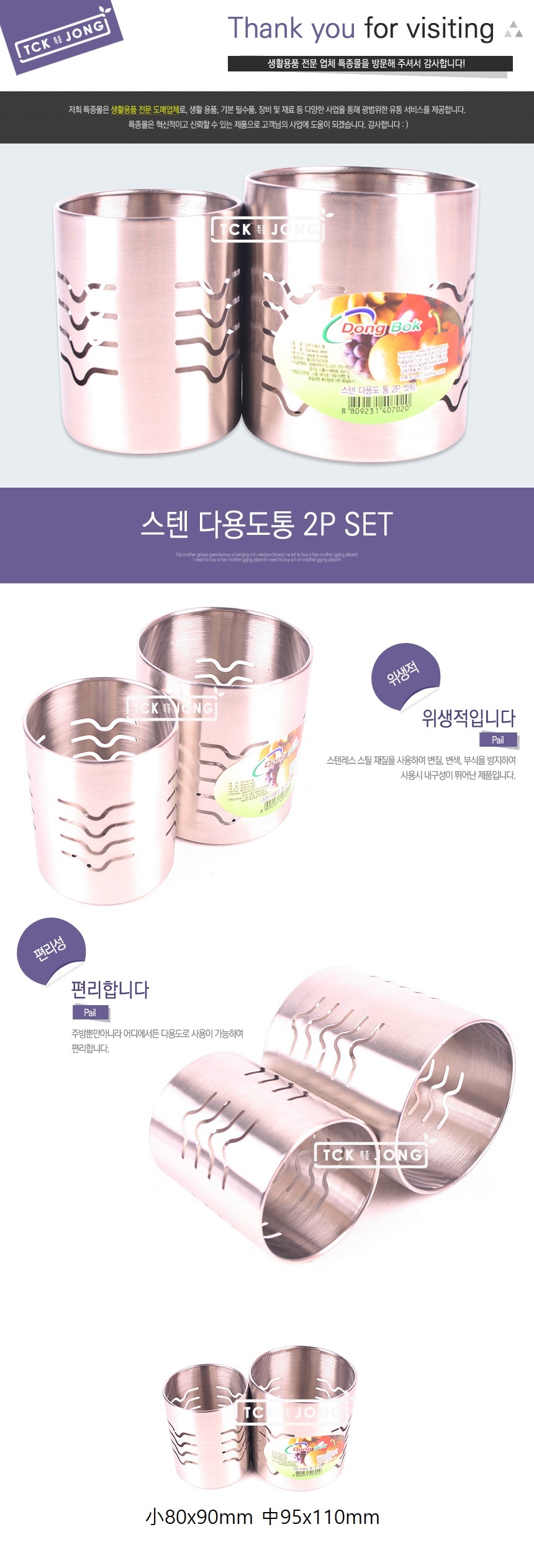 스텐 다용도통 2P SET 80x90 95x110mm 이미지/