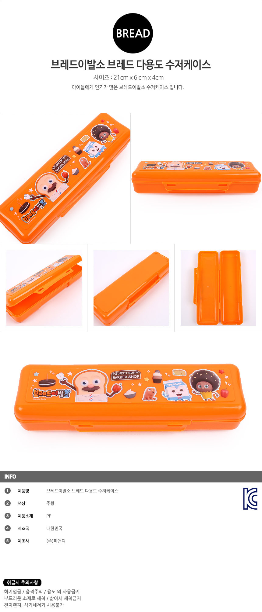 브레드이발소 브레드 다용도 수저케이스 캐릭터수저집 브레드수저집 다용도케이스 플라스틱통 수저