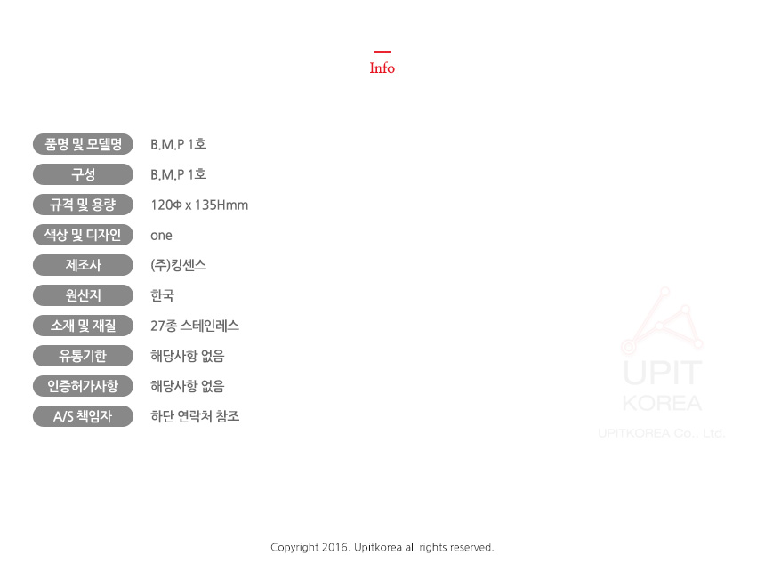 1. 품명 및 모델명 : 상세정보별도표시