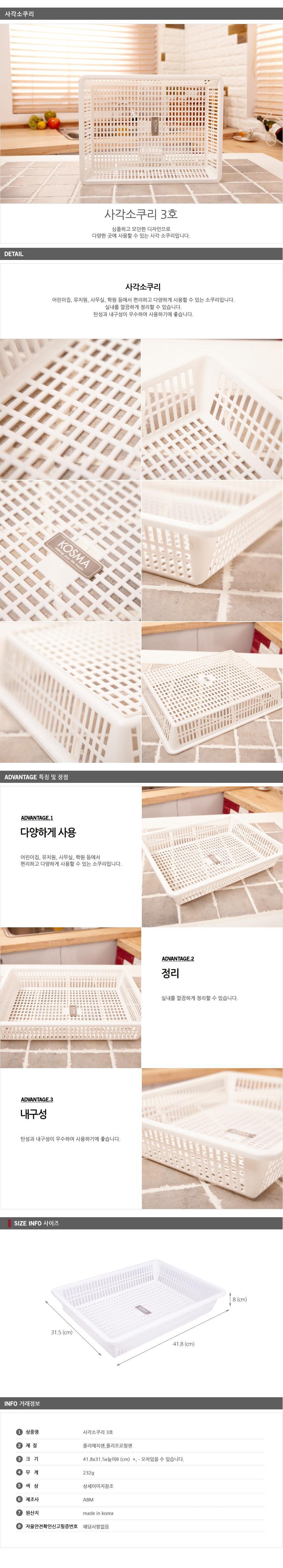 바스켓 사각 다용도함 3호 바구니 소쿠리 채반
