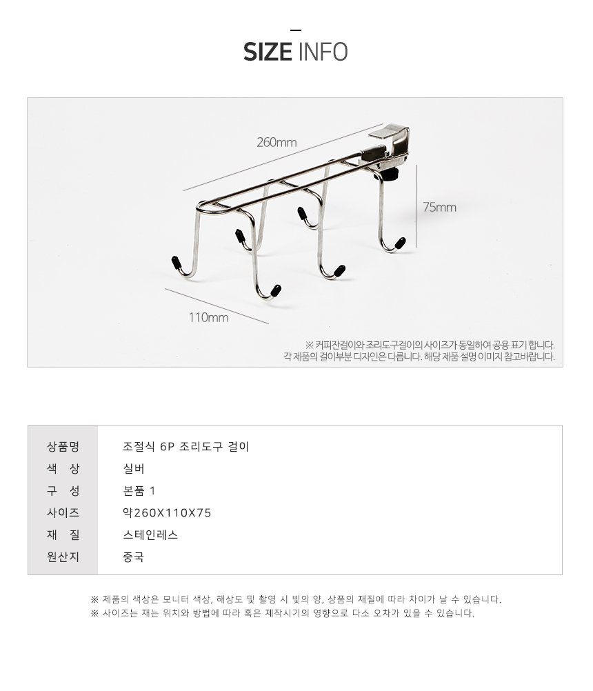 조절형 다용도 조리도구 걸이 6P