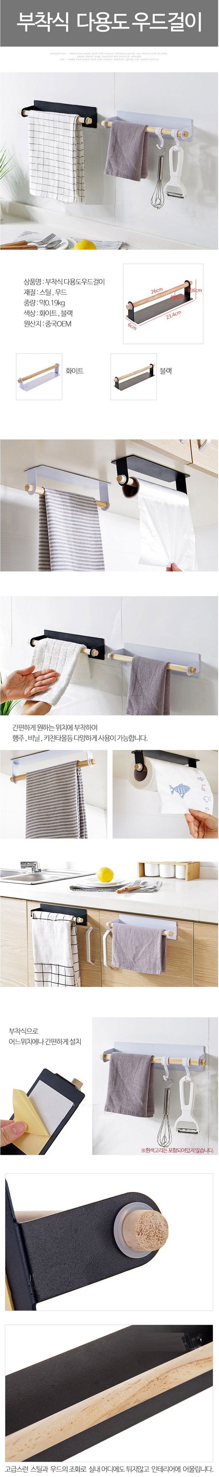 부착식 다용도걸이 우드 행주 비닐 키친타올