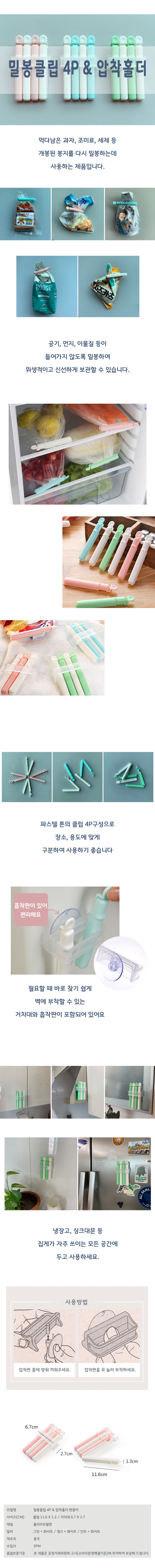 밀봉집게 봉지클립 봉지집게 흡착식거치대포함