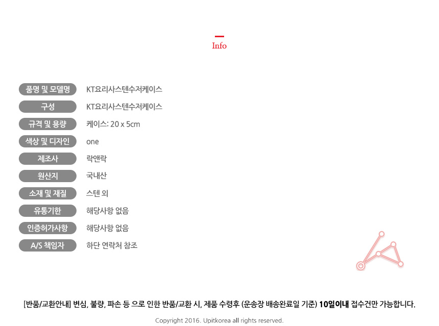 • 반품/환불조건: 도착후 1주일 이내 사용하지 않은 상태에서 가능합니다,초기제품 이상의 경우 동일한 제품으로 1:1 교환원칙, 사용후 제품이상은 A/S를 원칙으로 합니다,