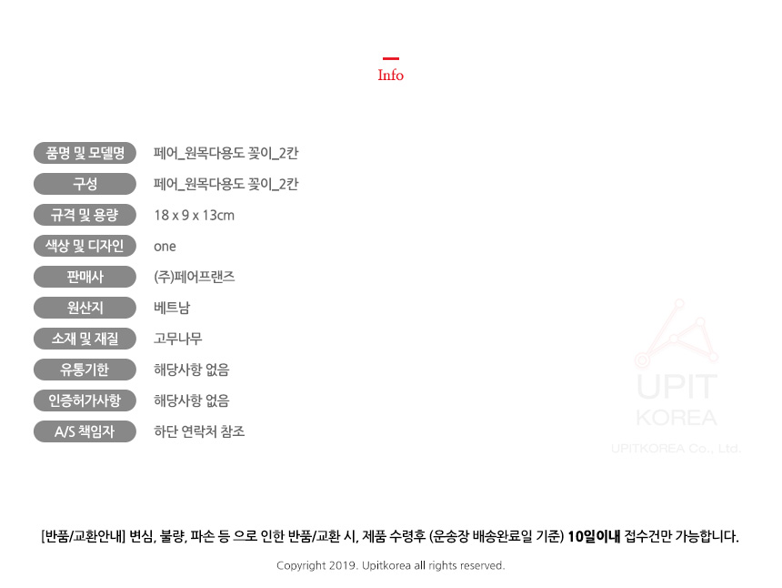 • 초기제품 이상의 경우 동일한 제품으로 1:1 교환원칙, 사용후 제품이상은 A/S를 원칙으로 합니다.