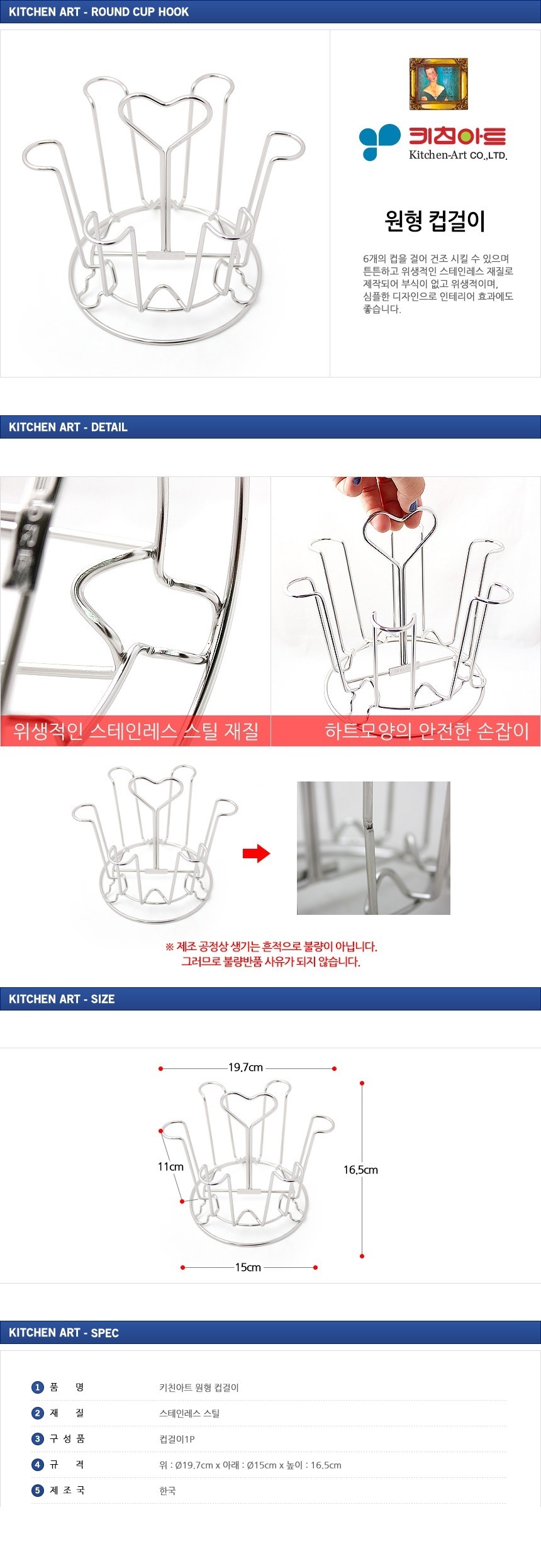 스텐 컵걸이 컵6개 가능 하트손잡이 이미지/