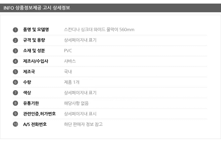 스칸디나 싱크대 와이드 물막이 56cm 이미지/