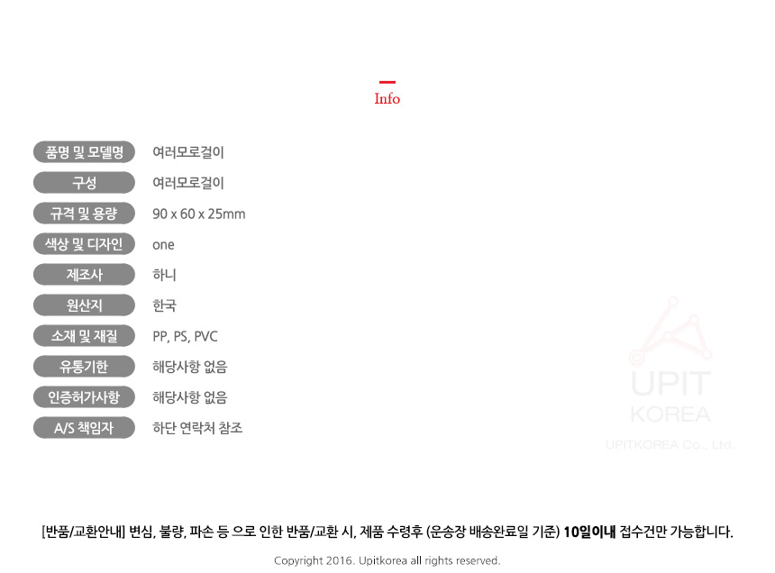 • 반품/환불조건: 도착후 1주일 이내 사용하지 않은 상태에서 가능합니다,초기제품 이상의 경우 동일한 제품으로 1:1 교환원칙, 사용후 제품이상은 A/S를 원칙으로 합니다,