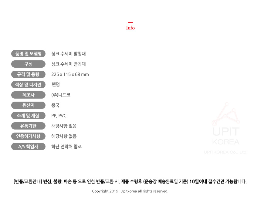 • 초기제품 이상의 경우 동일한 제품으로 1:1 교환원칙, 사용후 제품이상은 A/S를 원칙으로 합니다.