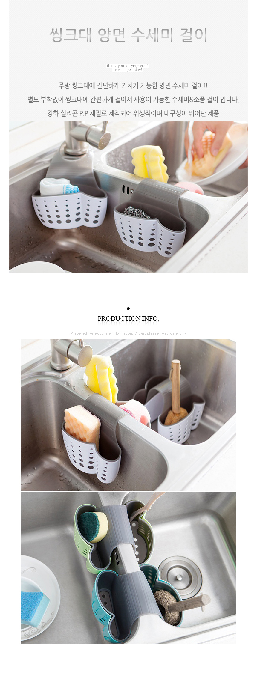 씽크대 양면 수세미 걸이/수세미홀더/씽크대선반/주방소품정리/주방소품보관/수세미건조대/수세미 이미지/