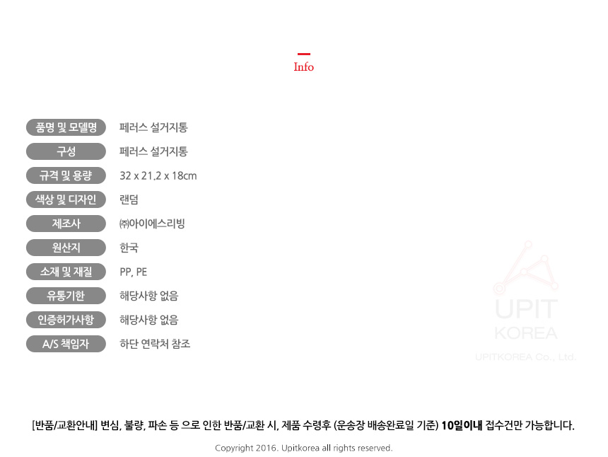 • 반품/환불조건: 도착후 1주일 이내 사용하지 않은 상태에서 가능합니다,초기제품 이상의 경우 동일한 제품으로 1:1 교환원칙, 사용후 제품이상은 A/S를 원칙으로 합니다,