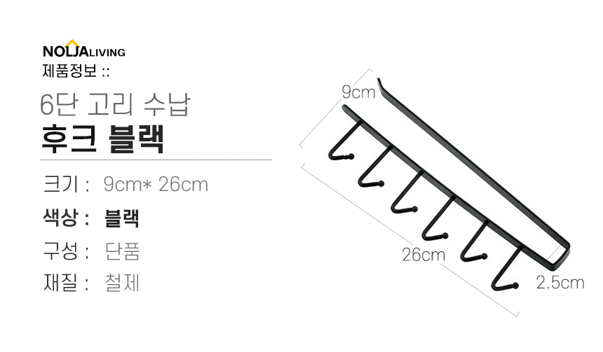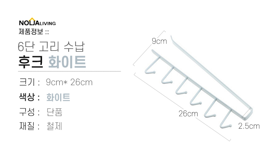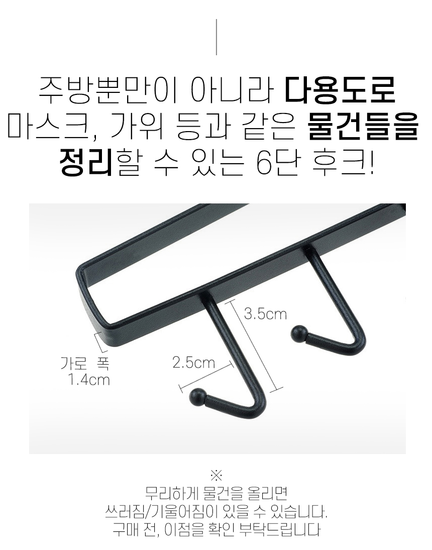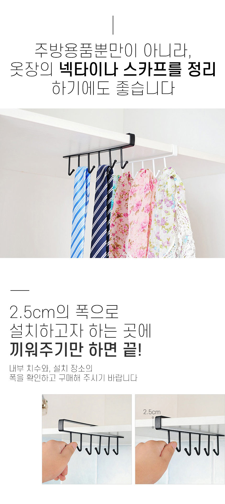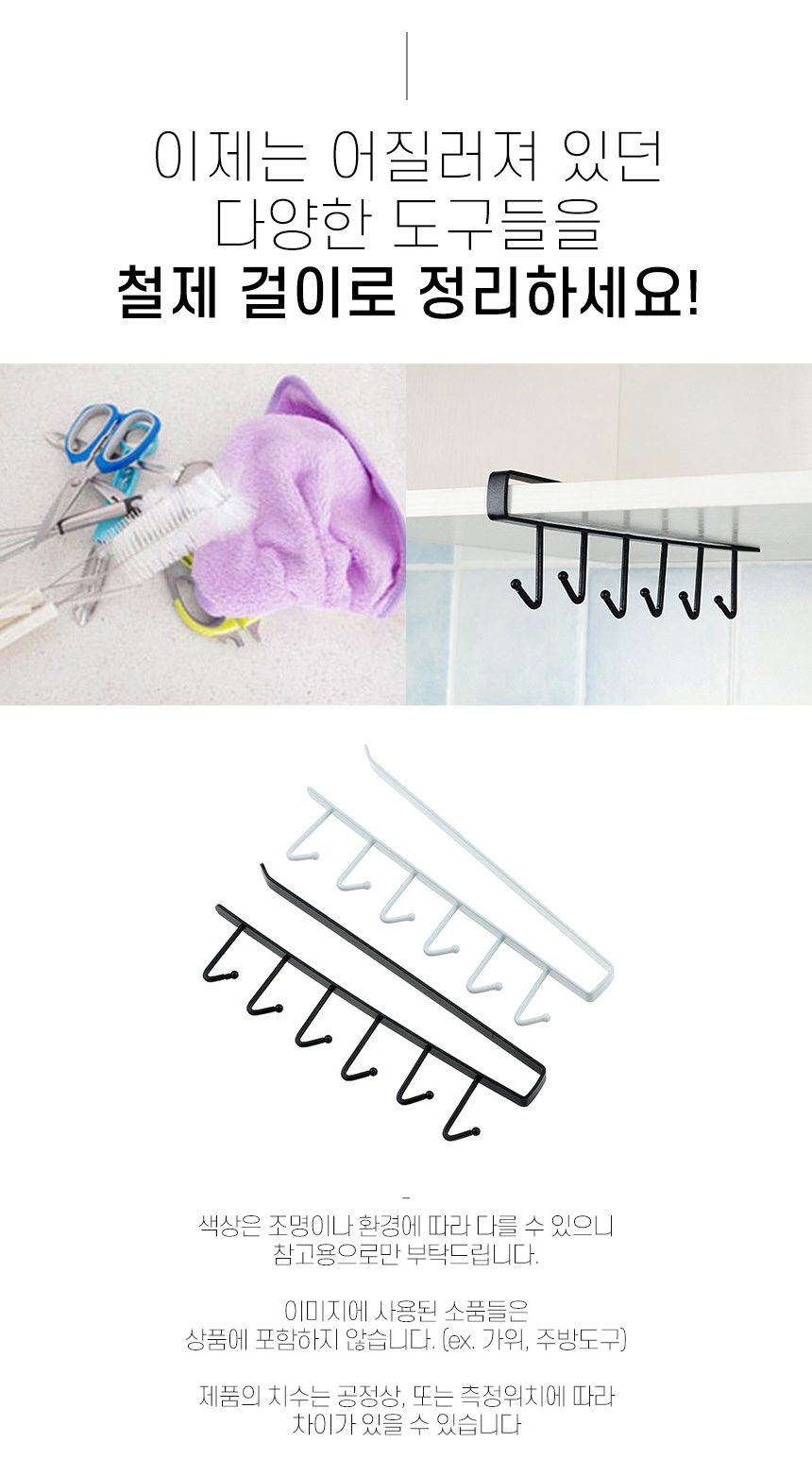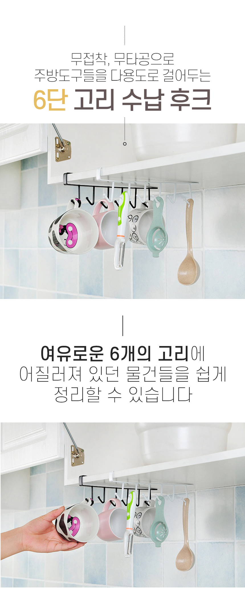 끼워쓰는 클립형 컵걸이 6단고리 수납후크 조리도구걸이 주방걸이