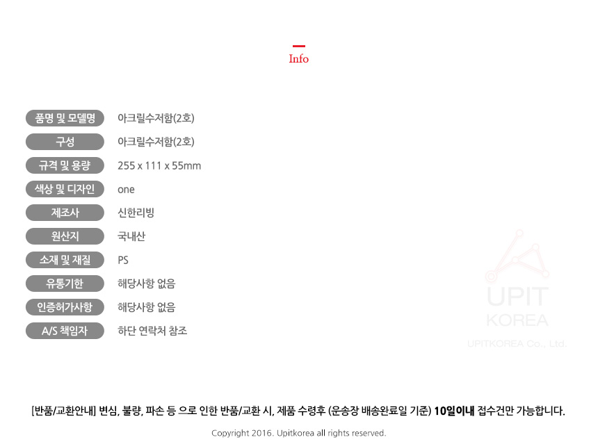 • 초기제품 이상의 경우 동일한 제품으로 1:1 교환원칙, 사용후 제품이상은 A/S를 원칙으로 합니다.