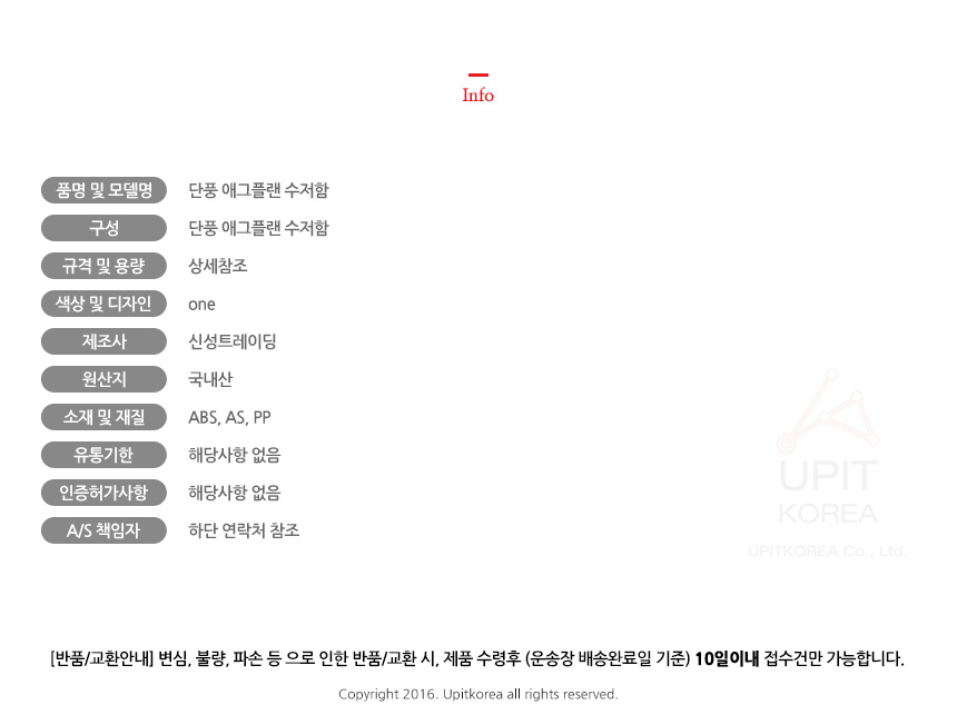 • 반품/환불조건: 도착후 1주일 이내 사용하지 않은 상태에서 가능합니다,초기제품 이상의 경우 동일한 제품으로 1:1 교환원칙, 사용후 제품이상은 A/S를 원칙으로 합니다,