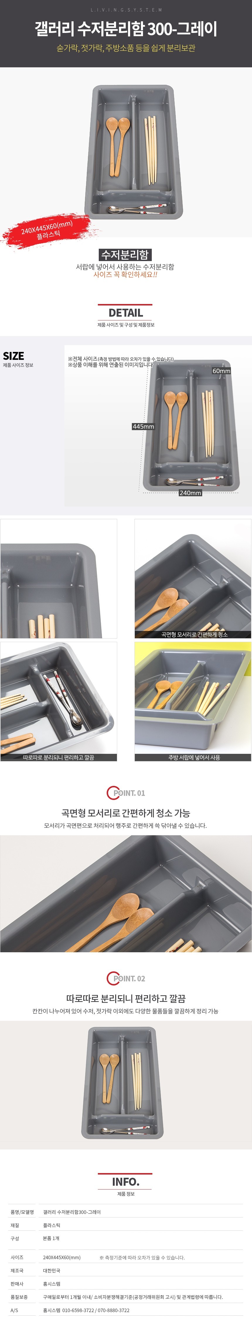 모델명 갤러리 수저분리함 300 -그레이