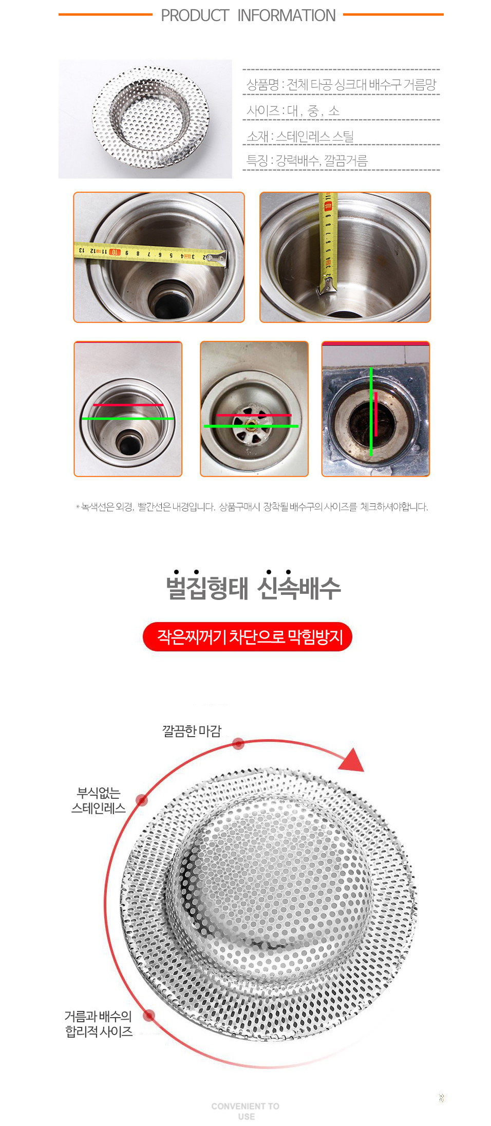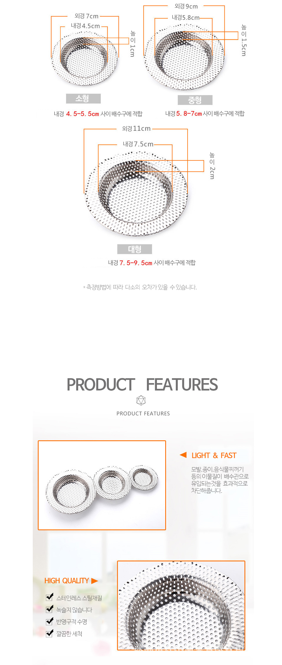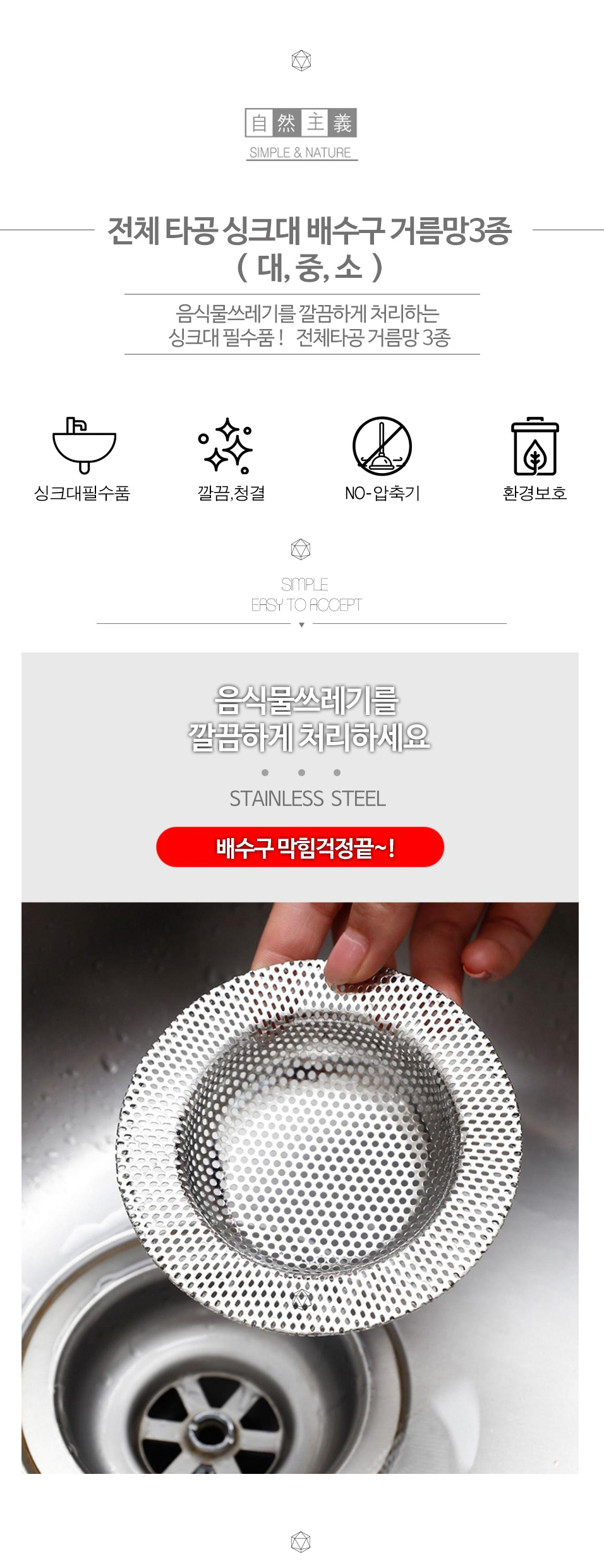 전체타공 3종 싱크대 배수구 거름망 음식물쓰레기