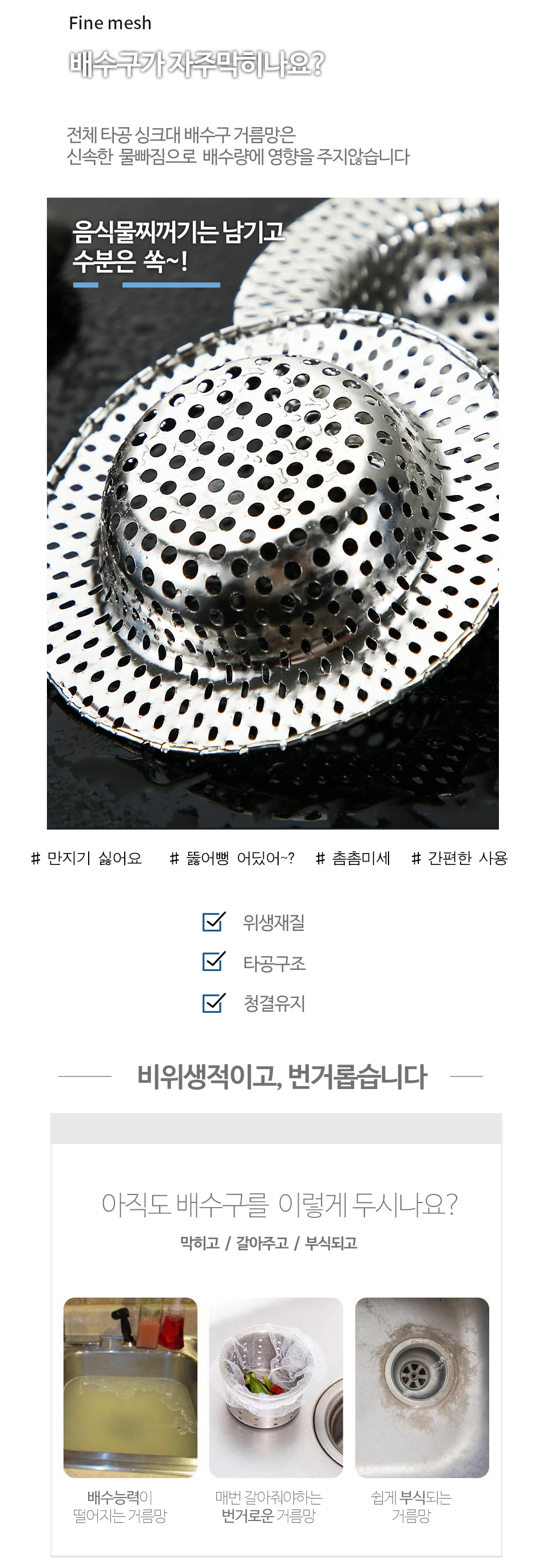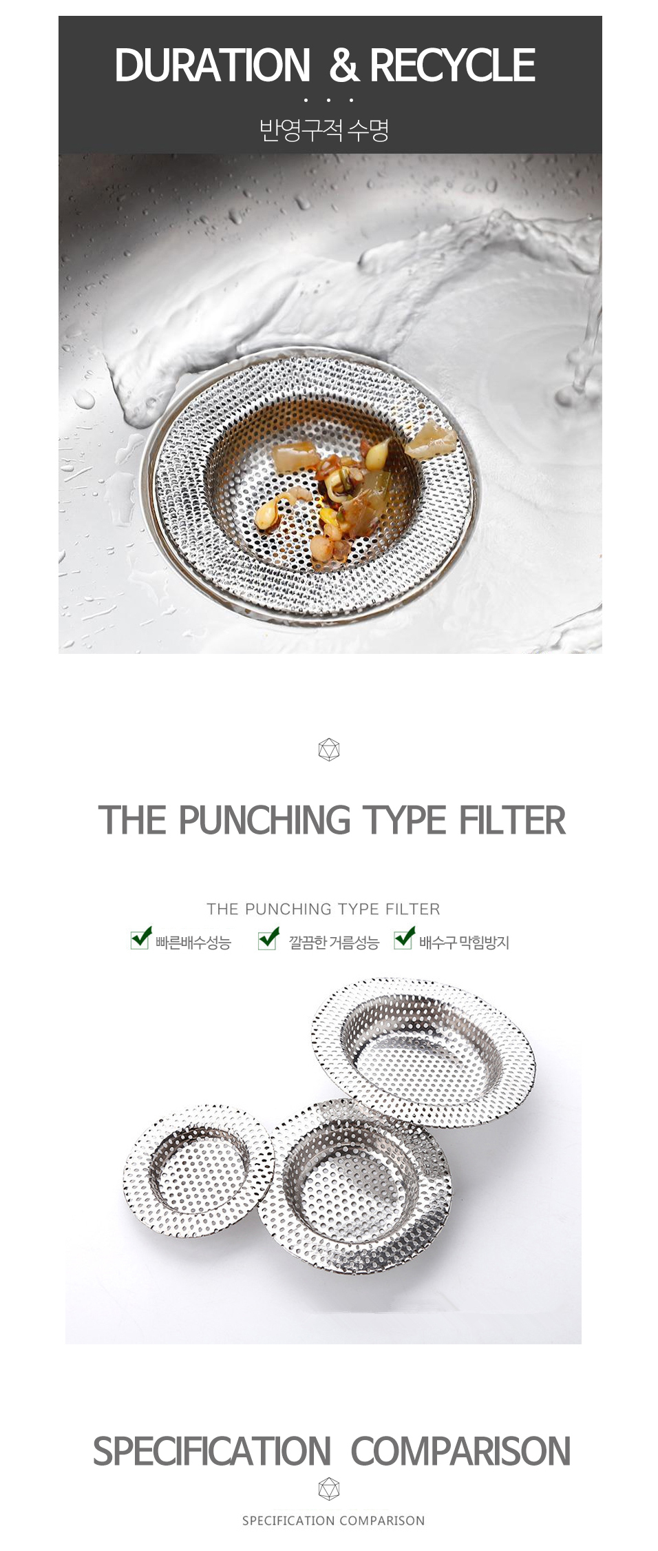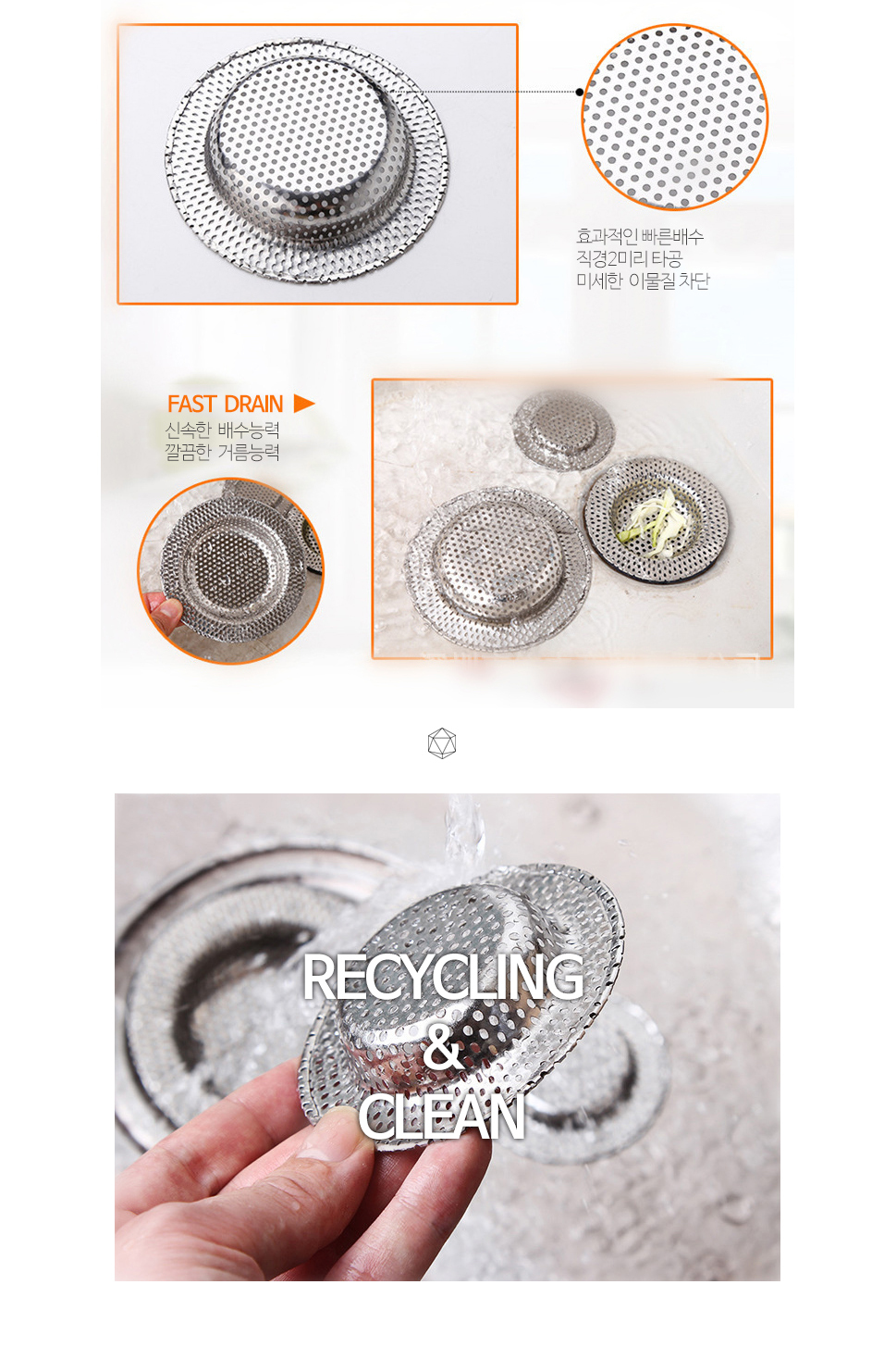전체타공 3종 싱크대 배수구 거름망 음식물쓰레기