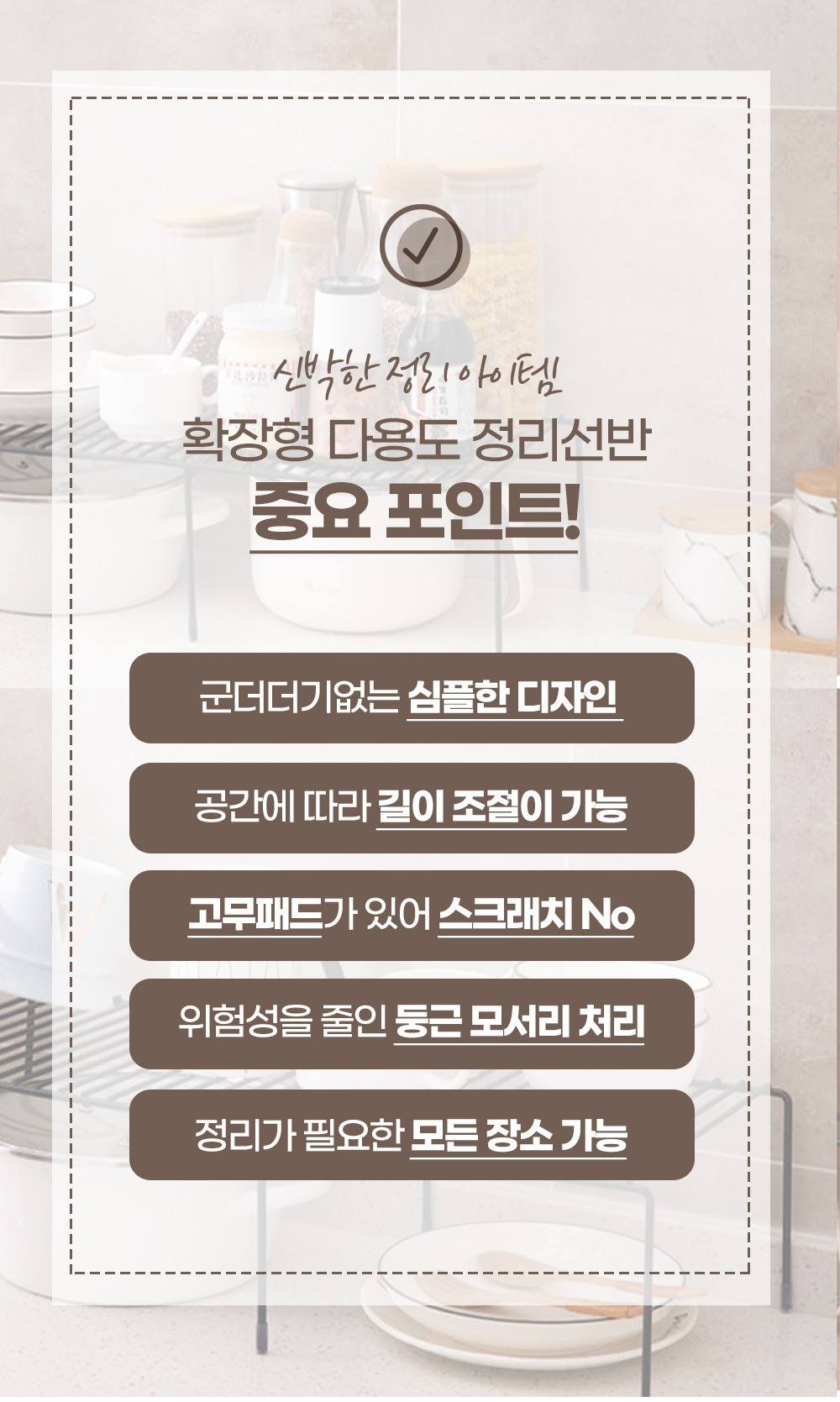 확장형 다용도 정리선반/접시/주방/싱크대 이미지/
