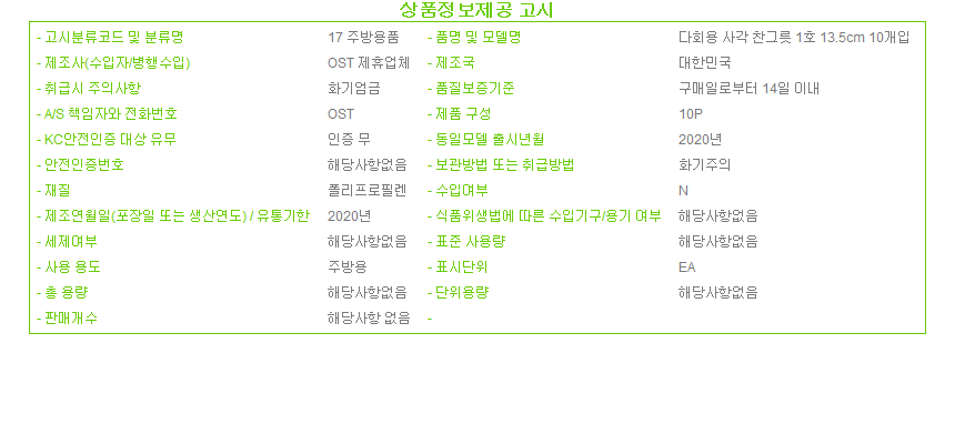 동해 청결 사각 찬그릇 1호 (13.5cm) 10개입 반찬용기 접시 찬기 식기