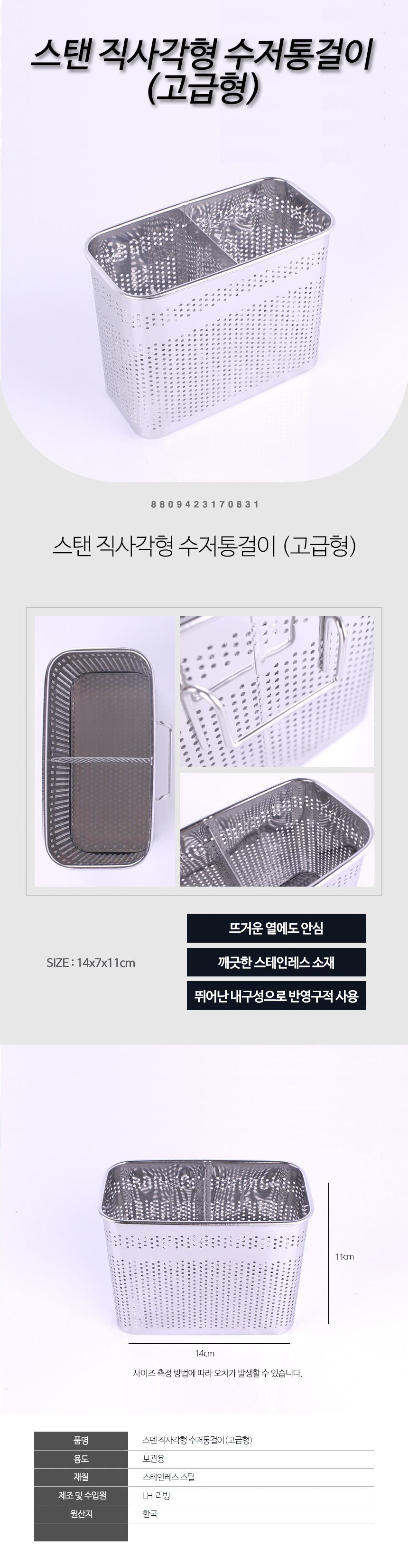 스텐직사각수저통(고급) 이미지/