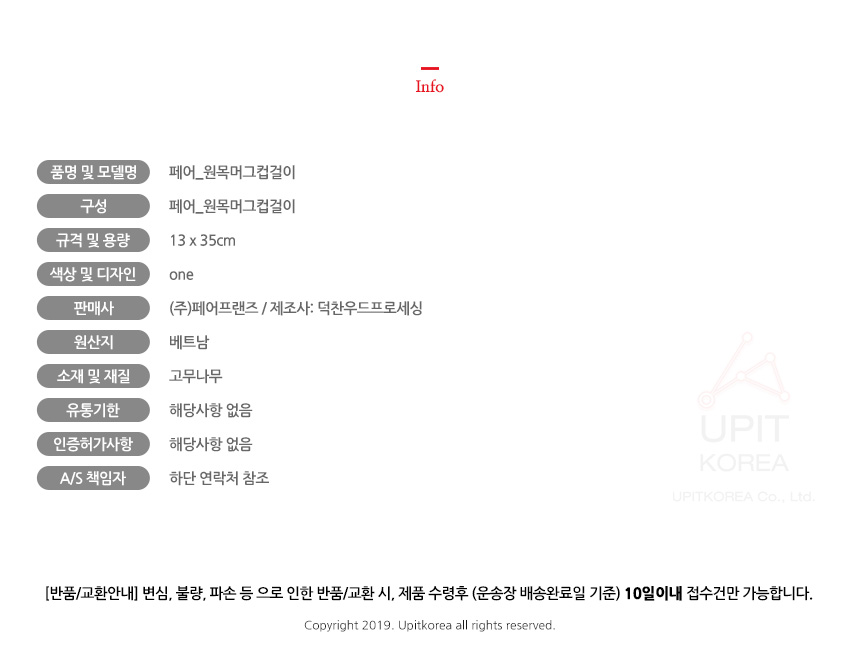 • 초기제품 이상의 경우 동일한 제품으로 1:1 교환원칙, 사용후 제품이상은 A/S를 원칙으로 합니다.