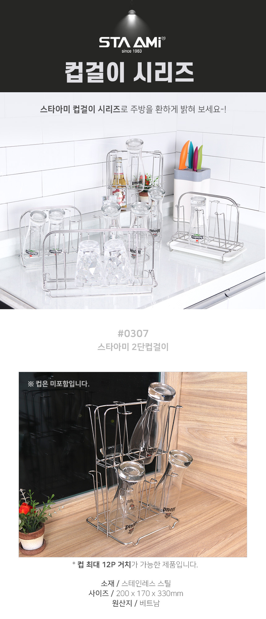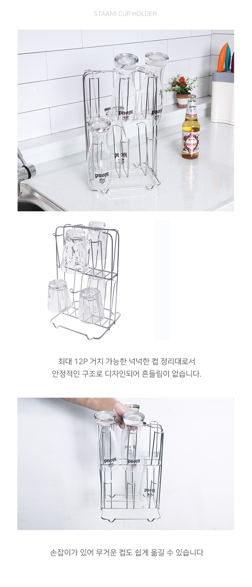 예쁜주방용품 스텐수저통 2단컵걸이 주방인테리어 컵꽂이 컵정리대