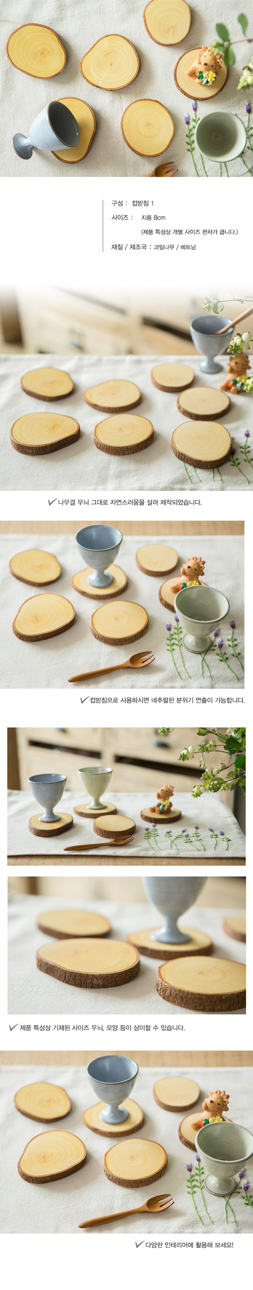 실내 인테리어 효과 빈티지 나무 네추럴 컵받침 티코스터 우드코스터 테이블웨어 코스터제작 이미지/