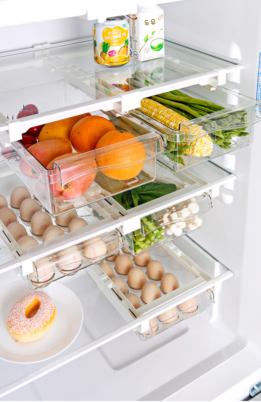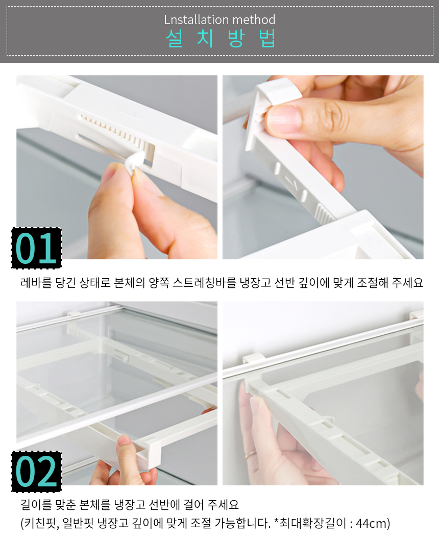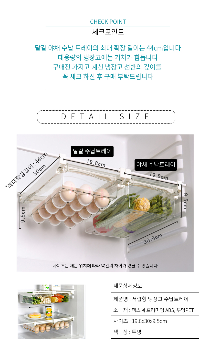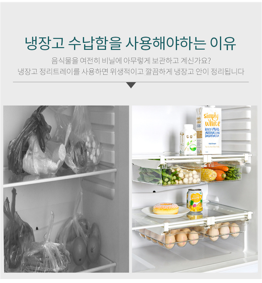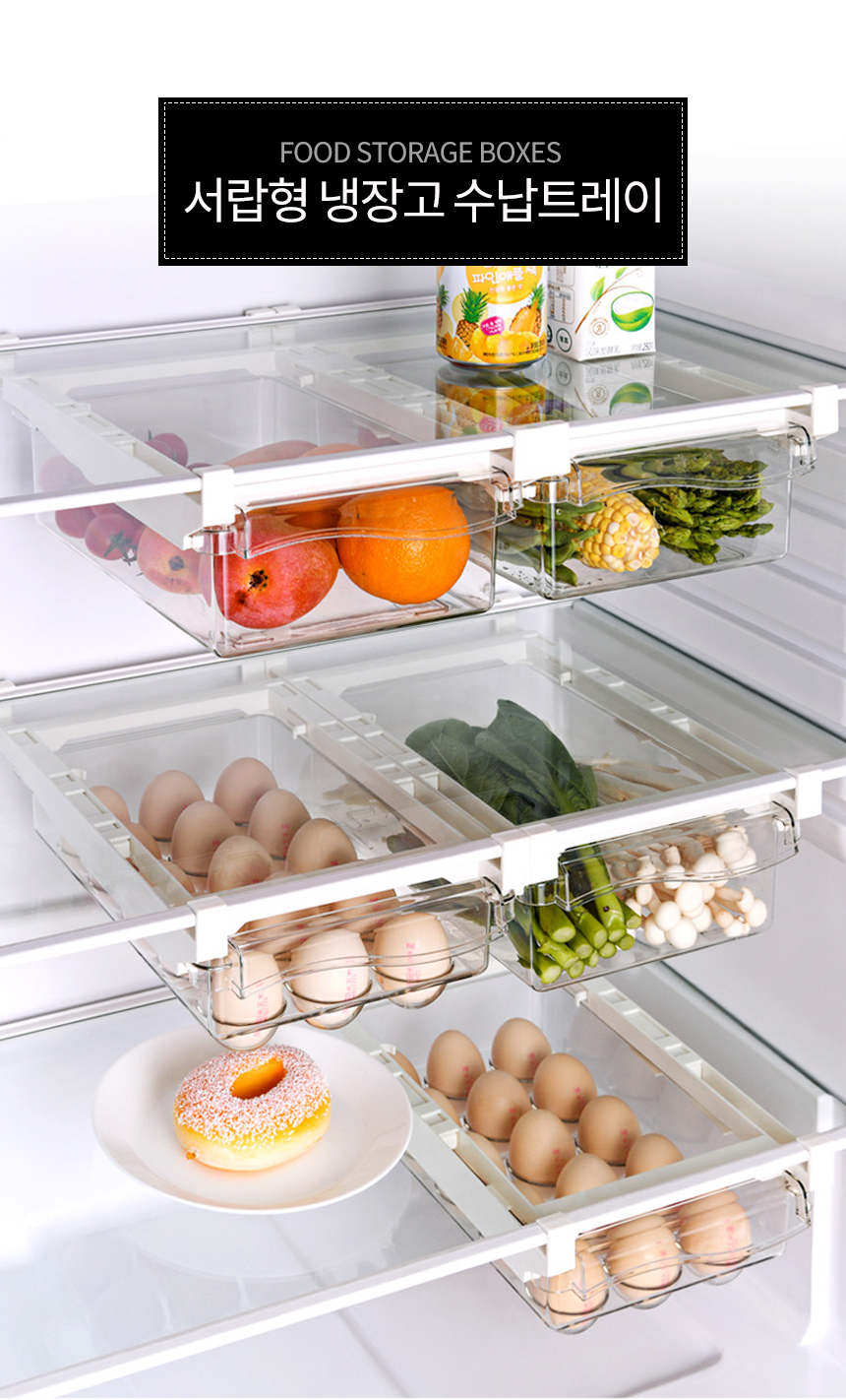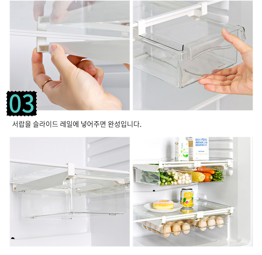 아래 냉장고 선반에 거치후 서랍식으로 사용하는 제품 2종