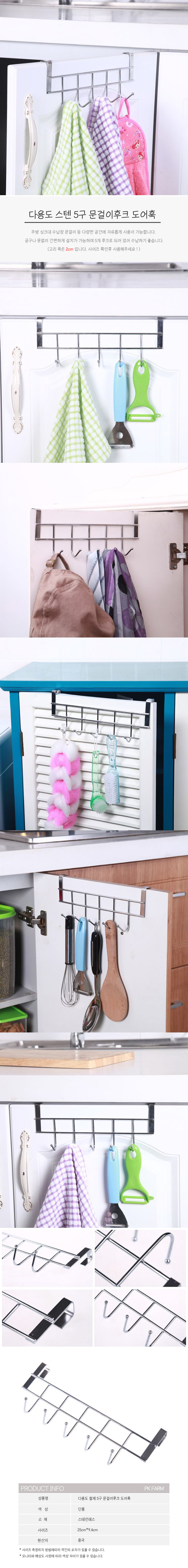 [PK] 다용도 스텐 5구 문걸이후크 싱크대 도어훅 이미지/