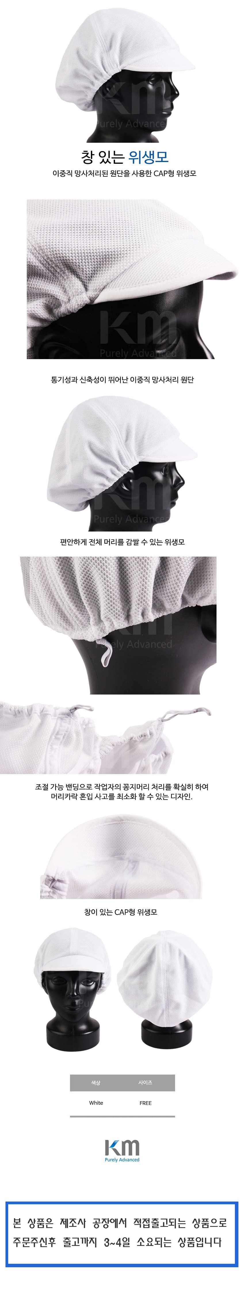 케이엠 위생모 작업모 헤드캡 식품 위생 조리 모자