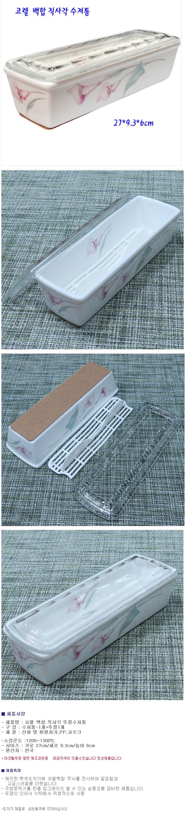 코렐 수저통 직사각 젓가락 수저함 숟가락통 보관함 H 이미지/