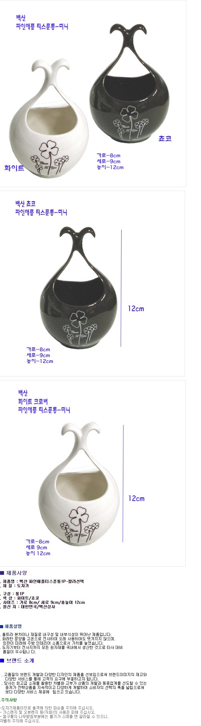 백산 수저통 티스푼 도자기 수저통 수저 꽂이 받침
