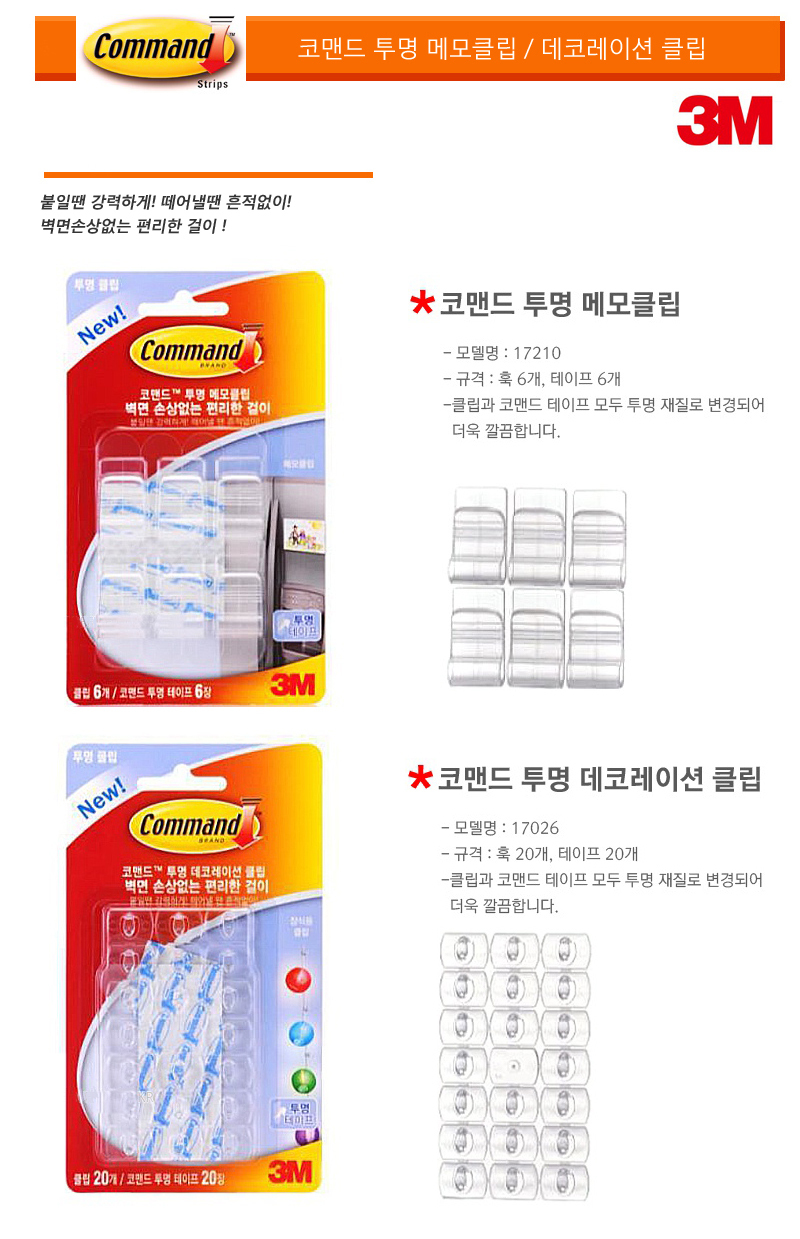 1. 품명 및 모델명 : 3M 코맨드 투명 클립 (메모 클립/데코레이션 클립)