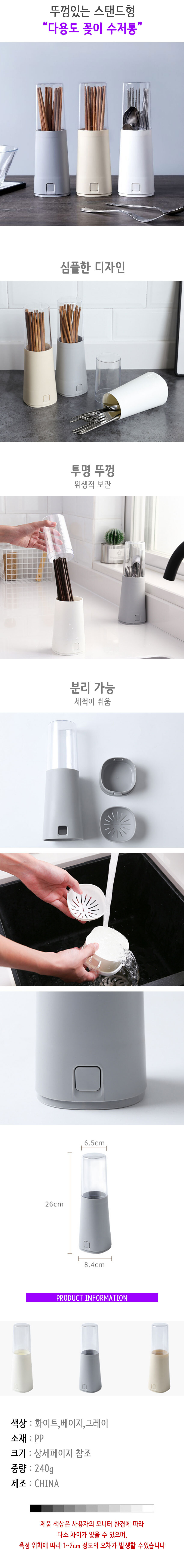 스탠드형 뚜껑 물빠짐 수저통 수저 정리함 조리도구통 수저함 수저꽂이 업소용수저통 숟가락통  이미지/