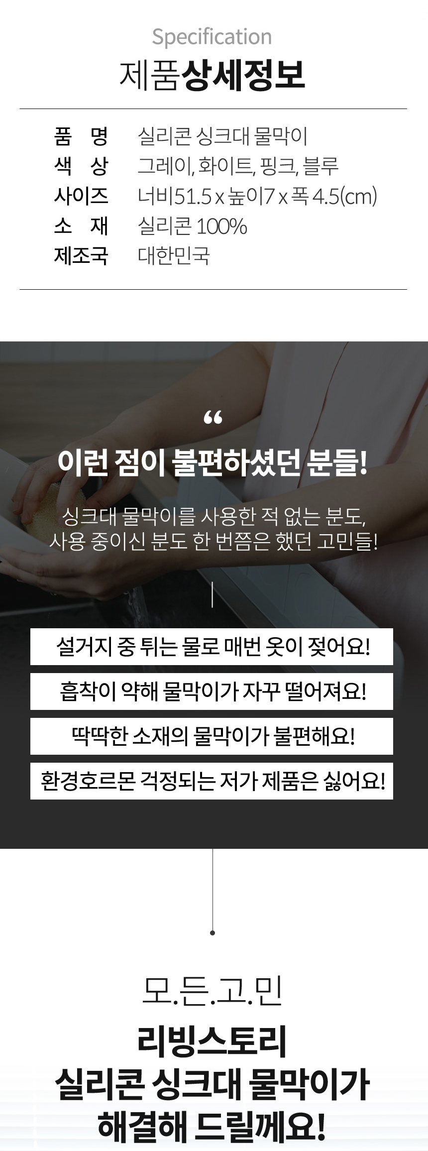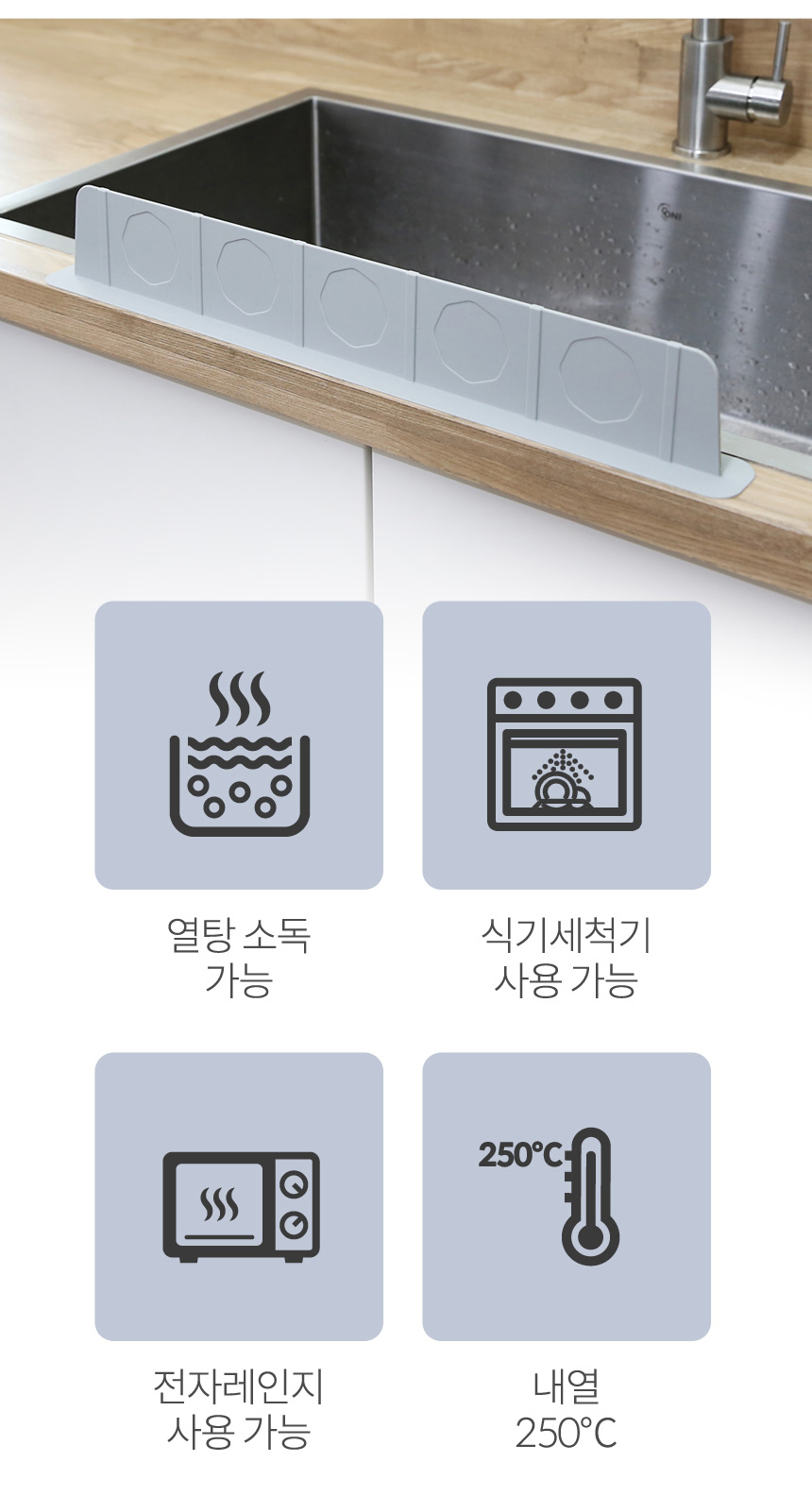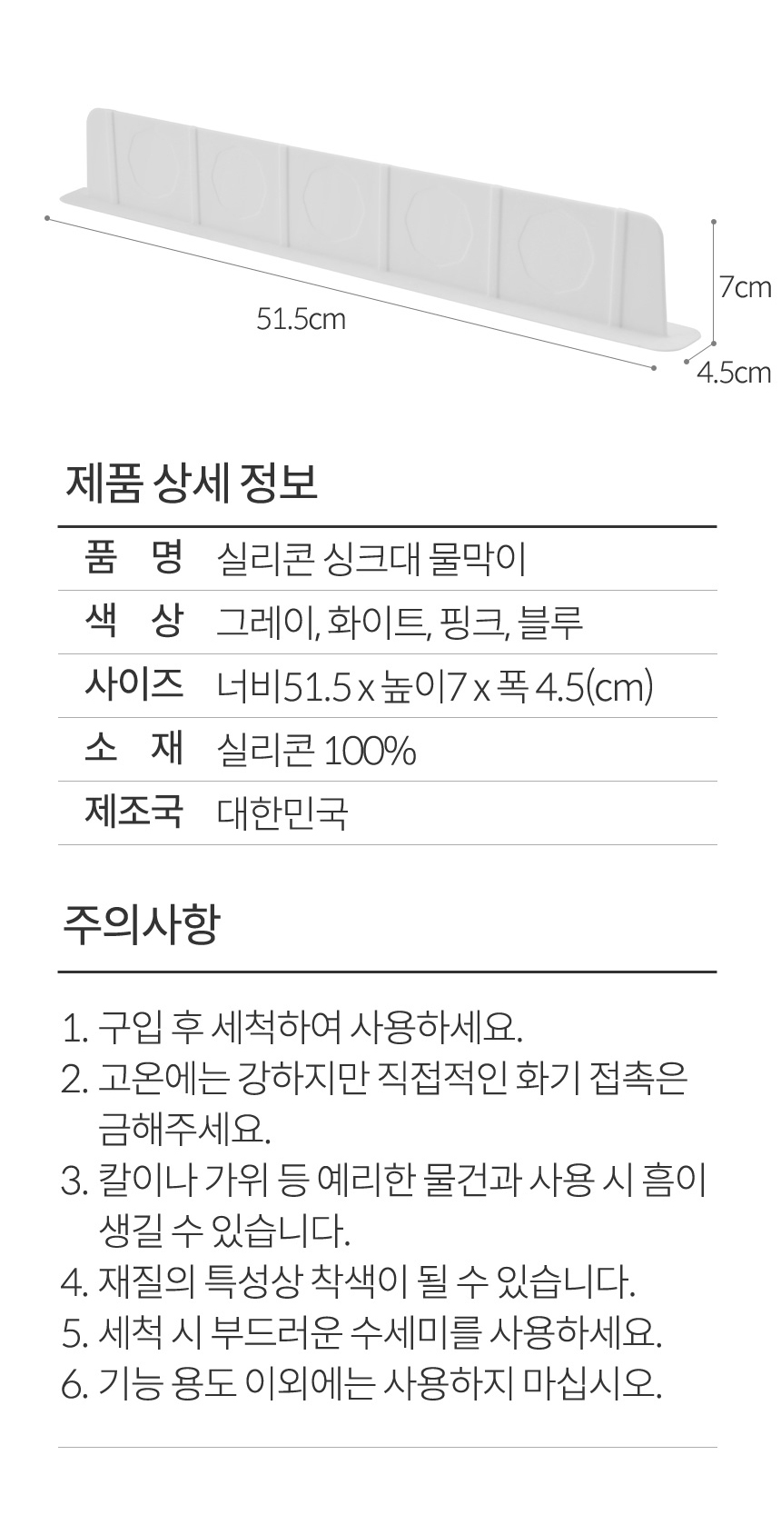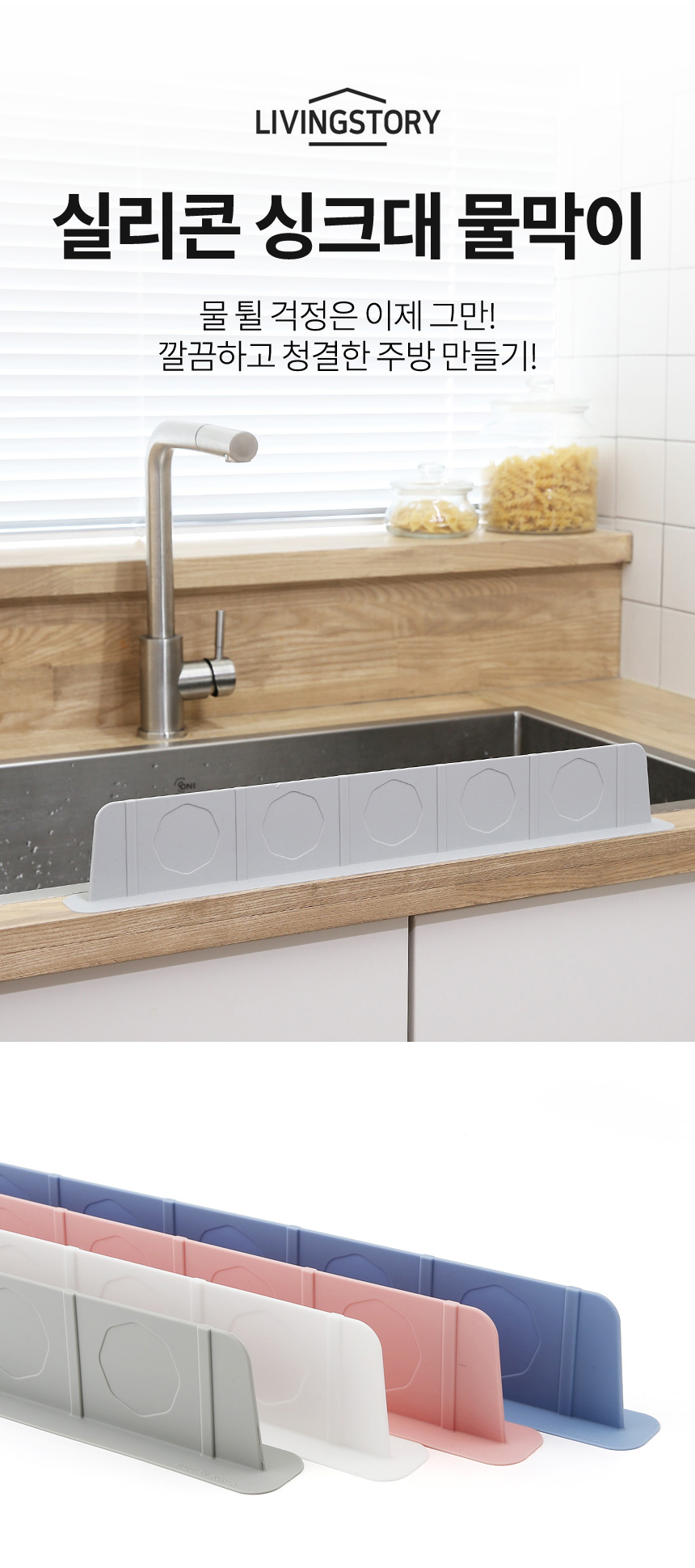 국내생산 흡착식 실리콘 싱크대물막이 이미지/