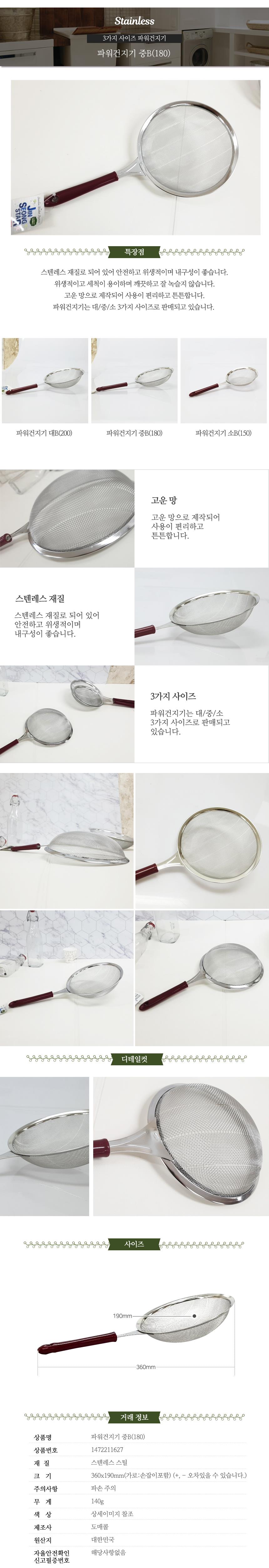 주방용뜰채 중B 건지기 건지개 거름망 파워