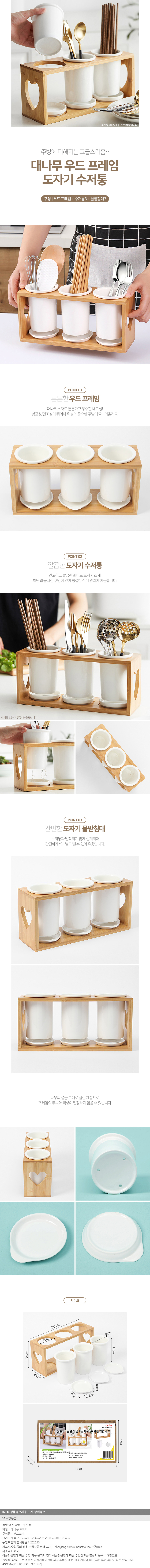 키친홈 우드프레임+도자기 수저통 3p세트 이미지/