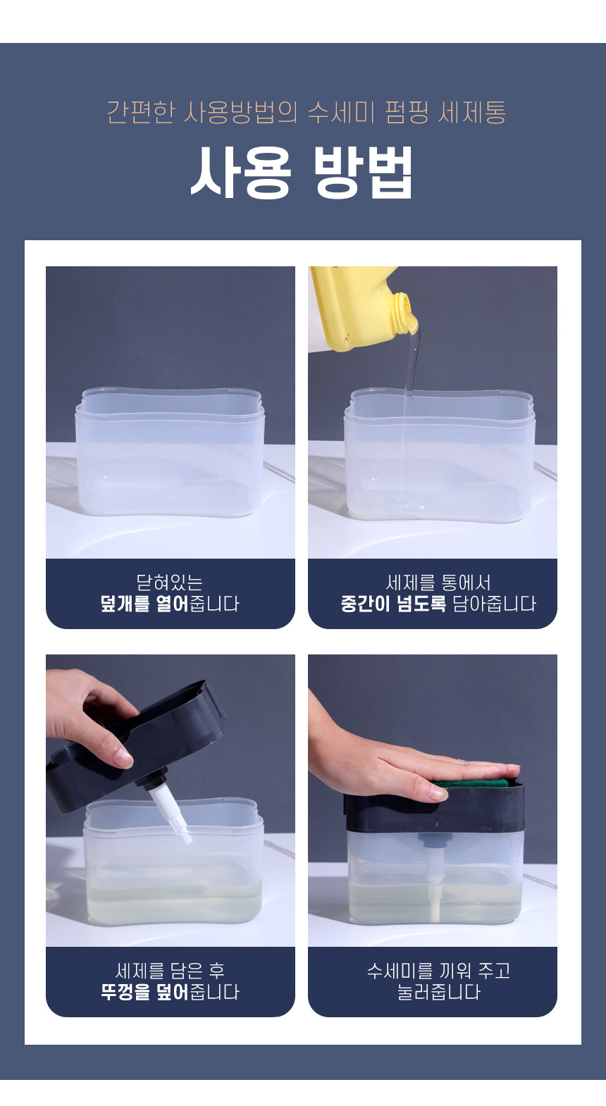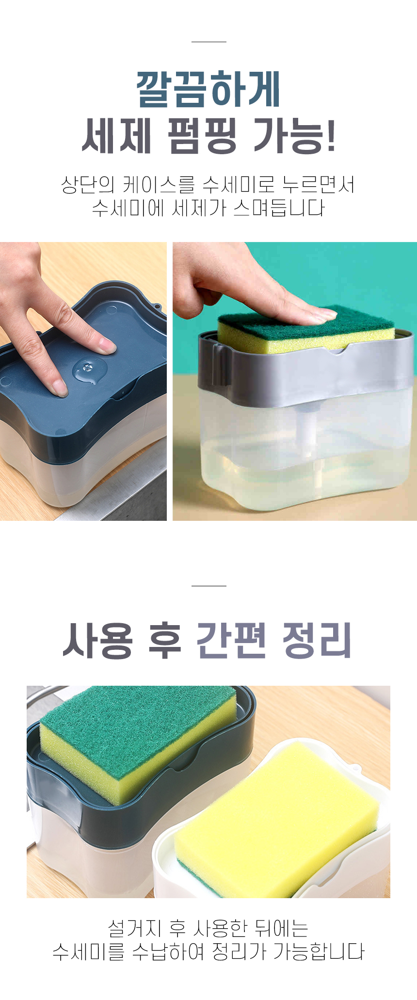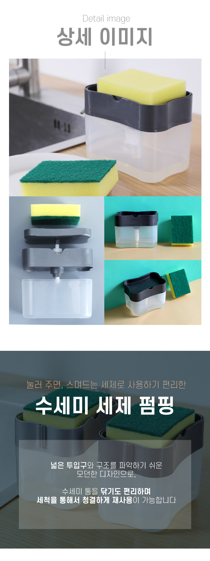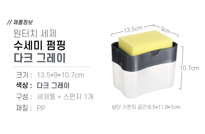 원터치 세제수세미용기 일체형 펌핑용기 주방세제용기 수세미용기