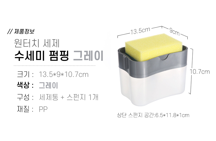 원터치 세제수세미용기 일체형 펌핑용기 주방세제용기 수세미용기 이미지/