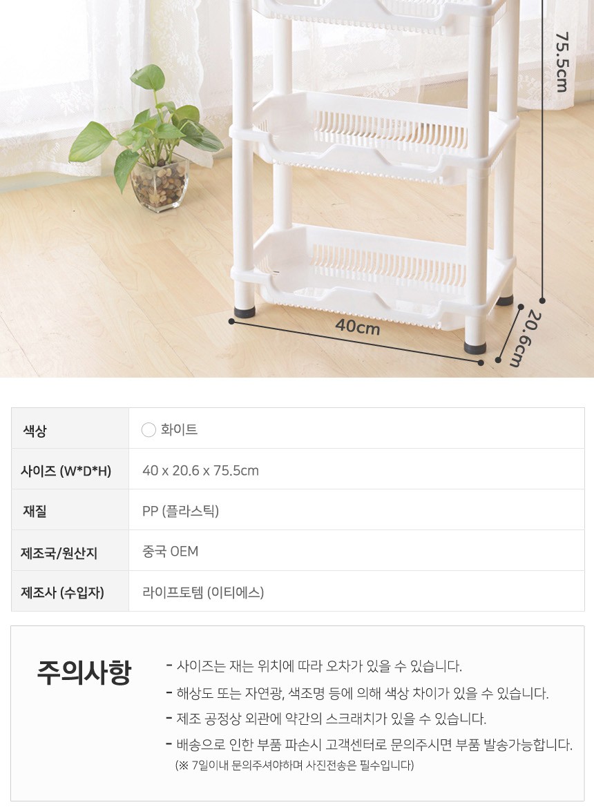 라이프토템 다용도 틈새 수납선반 4단 이미지/